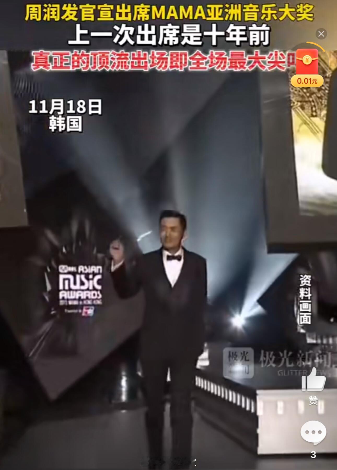 周润发官宣出席mama周润发于2025年11月18日官宣以颁奖嘉宾身份出席11月29日的MAMA典礼,这是他继2015年后时隔十年的再次亮相!又要去给韩娱一些大震撼了!上一次还是2015年,也就是十年前,刚好十年过去了,真正的时代回忆!回顾十年前发哥登场MAMA,slay全场!2015年他曾与鸟叔(PSY)共跳《江南Style》骑马舞,并为BIGBANG颁发年度艺人奖,成为经典名场面!