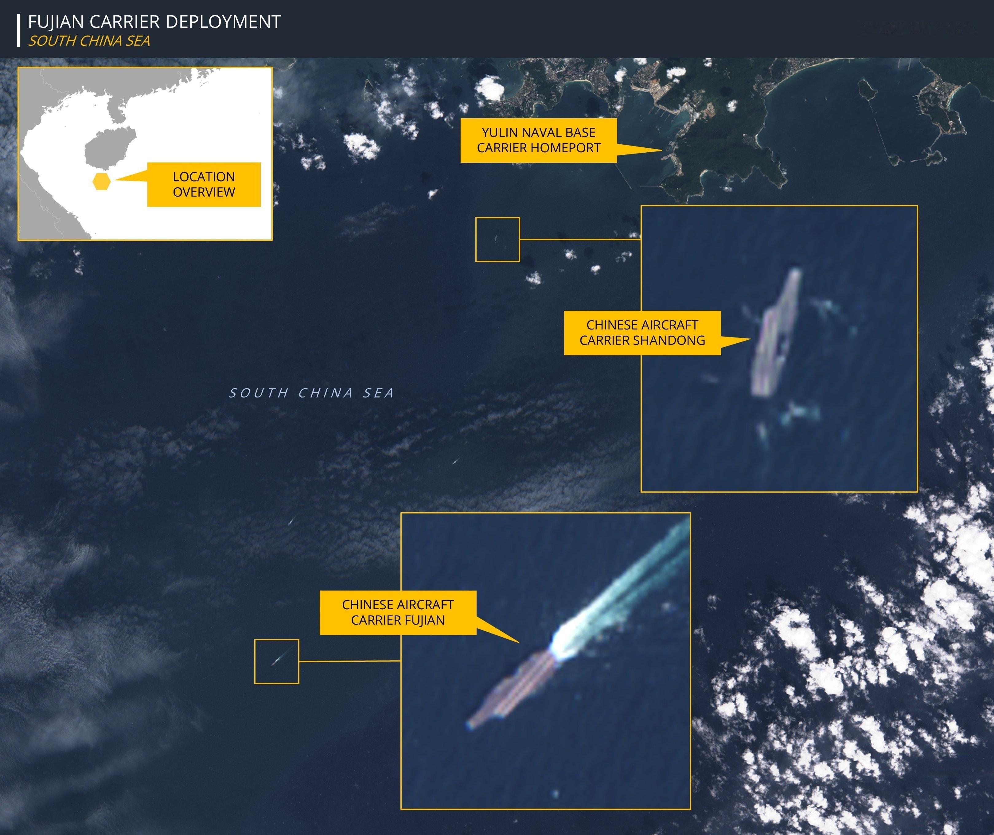 “福建舰”服役后与“山东舰”同时出海,或将进行双航母编队演练!据外网发布的卫星图像显示,11月17日,刚服役不久的“福建舰”已经显示南海海域进行训练了,而附近不远还有“山东舰”和055大驱等,这一情况表明此次“福建舰”可能会与“山东舰”进行双航母编队演练。预计接下来“福建舰”的训练应该会十分频繁,毕竟时不我待,而且歼-35、空警-600等也都是新型舰载机,“福建舰”的当务之急是形成初始战斗力……