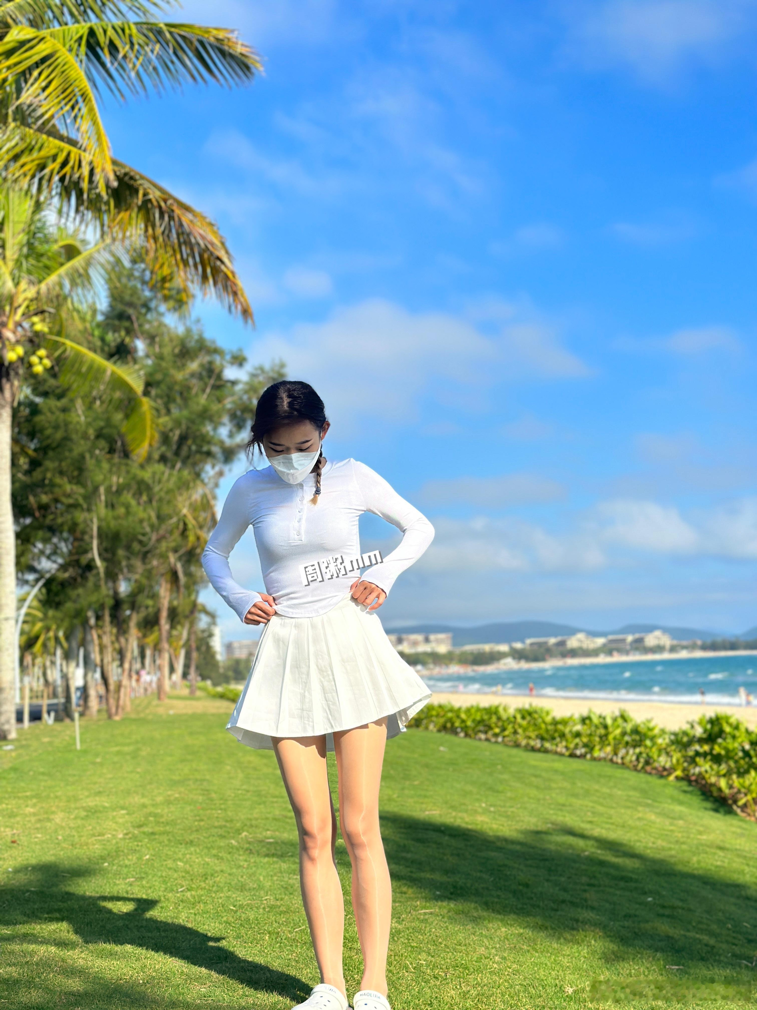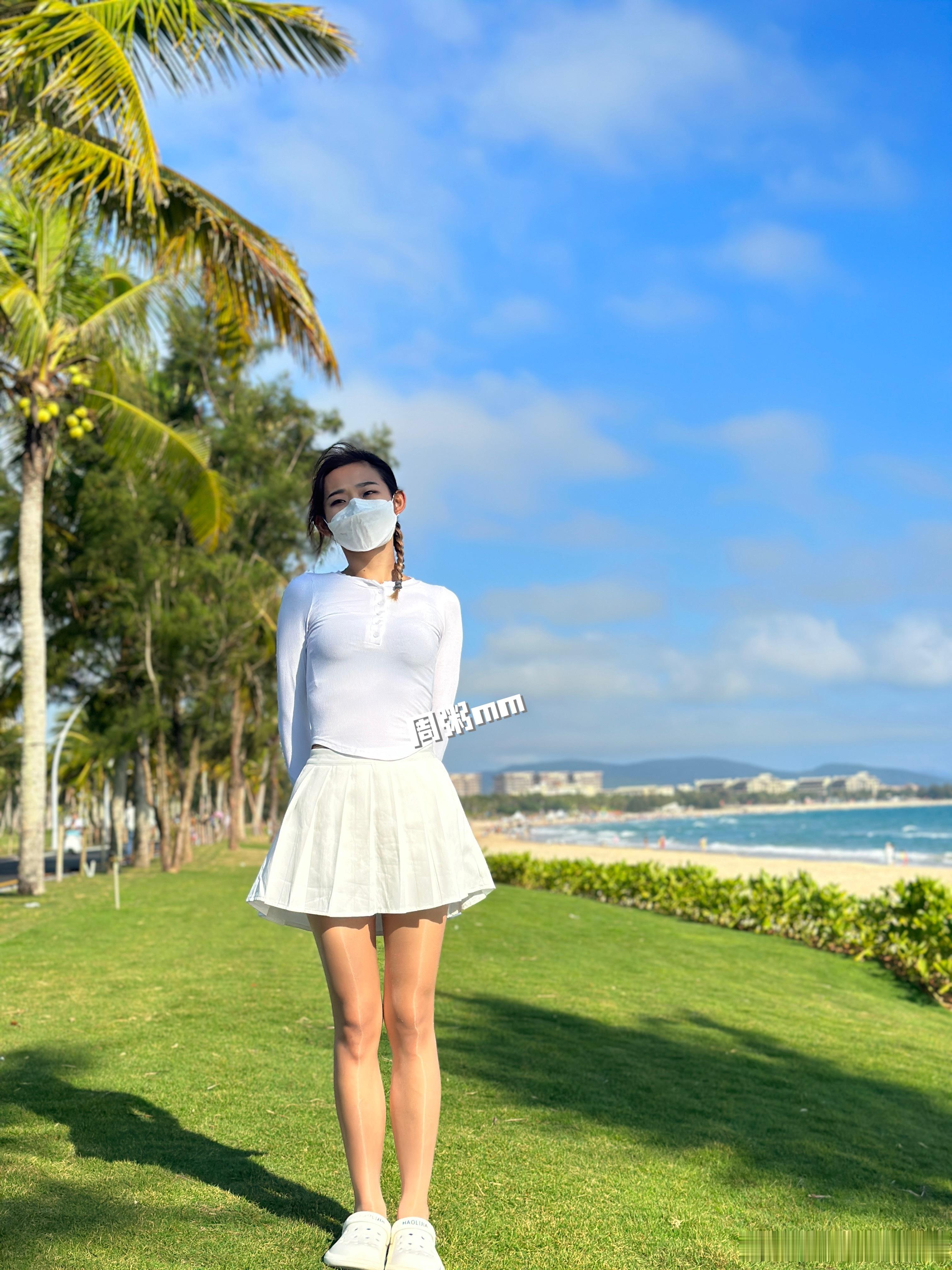 一袭米白色系带套装简约又优雅,透明高跟鞋更添精致感,行走间尽显从容自信。