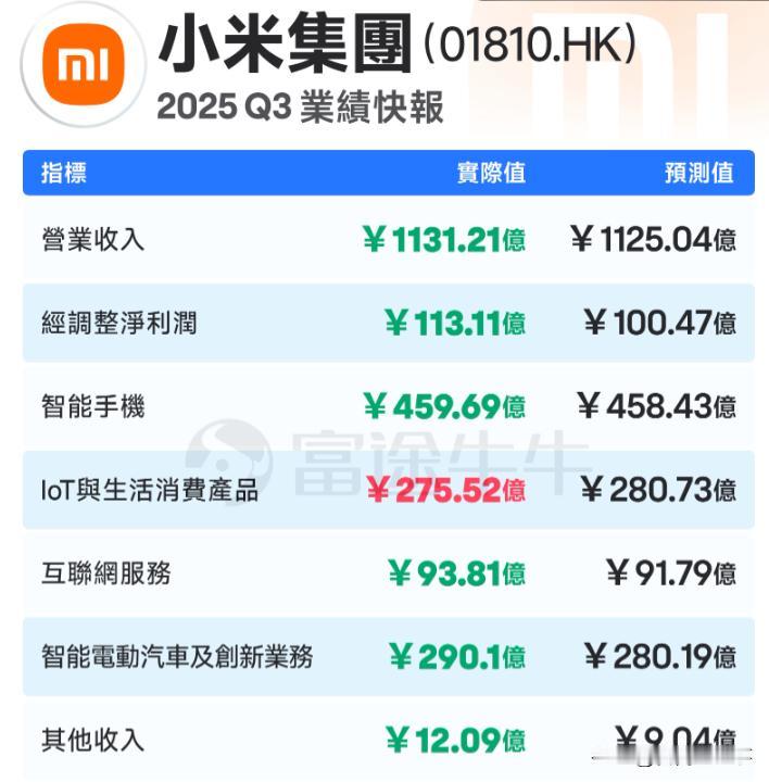 今天,小米集团业绩公布,三季度营业收入1130亿,净利润高达113亿,净利润率10%,作为一家以汽车、手机、iot为主的硬件制造企业,这个净利润率已经相当优秀了。尤其值得一提的是,小米电动汽车单季度营收突破290亿,并实现了7亿元的季度经营收益,成为新能源车厂为数不多的既有出货量也有利润的企业。三季度小米新车交付11万辆,也创下历史新高。