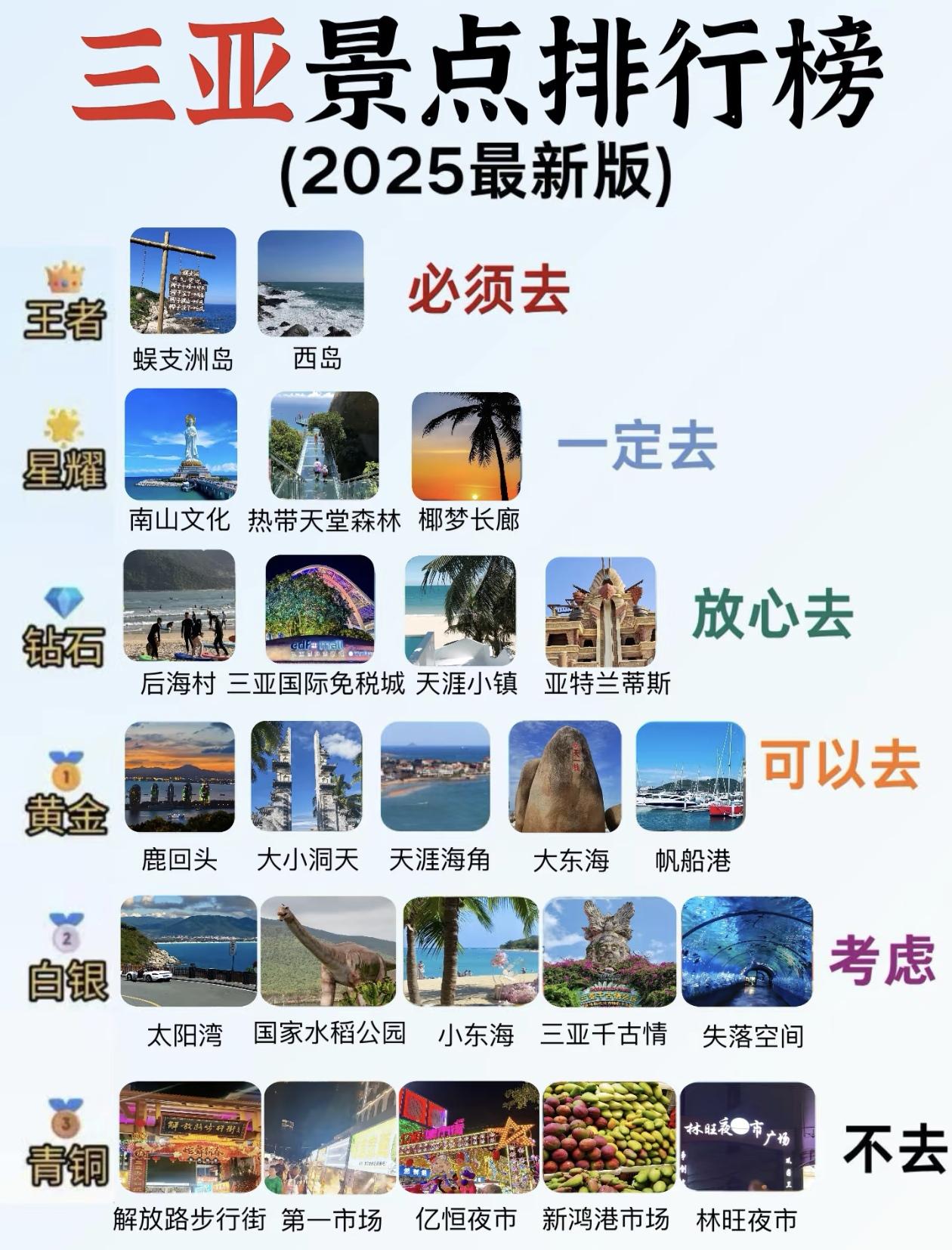 2025最新版~三亚旅游景点段位排行榜出炉!