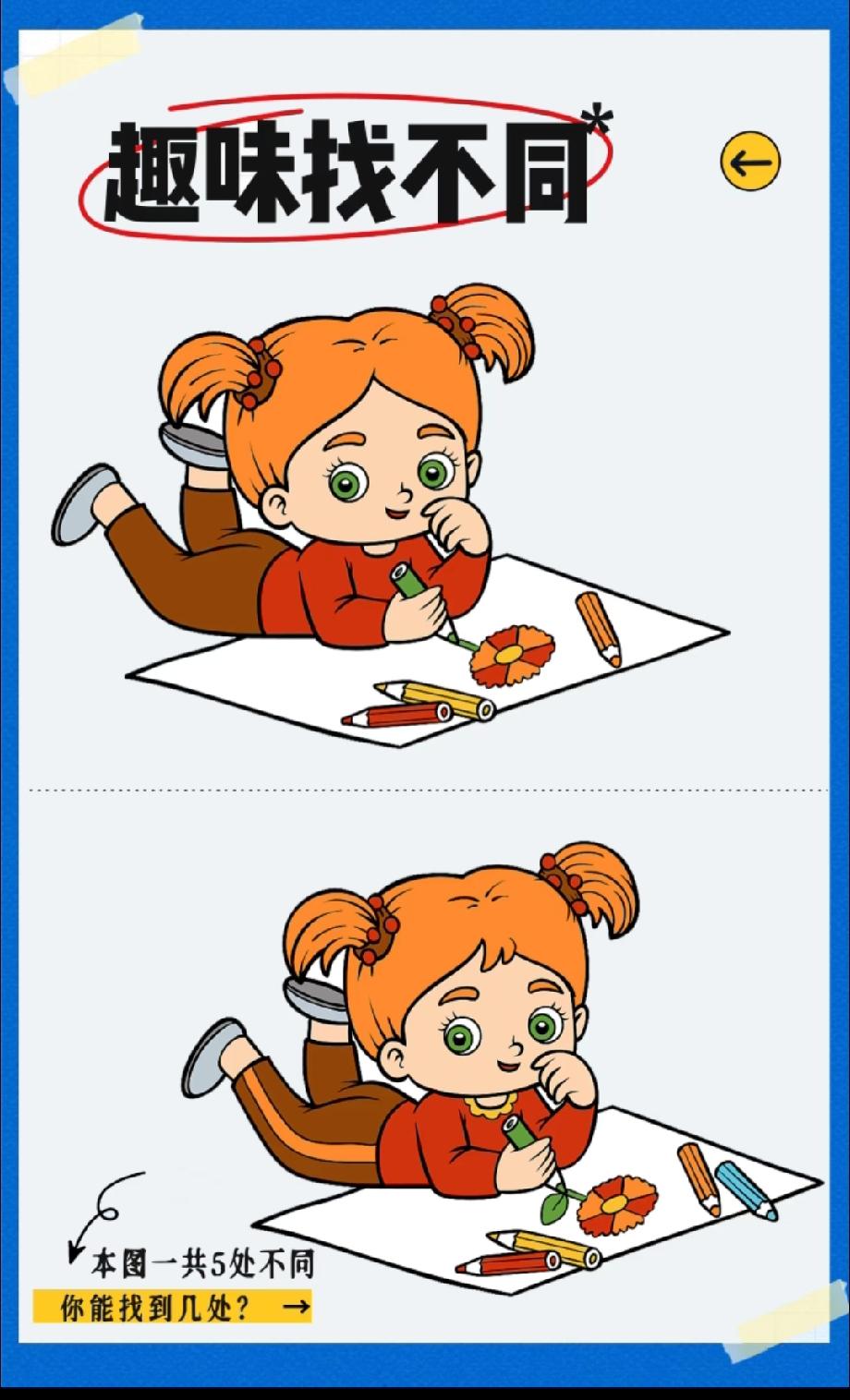 这小女孩找不同太好“坑”了!5处差异我找了2分钟才抓2处,你能全揪出吗?评论区晒进度!