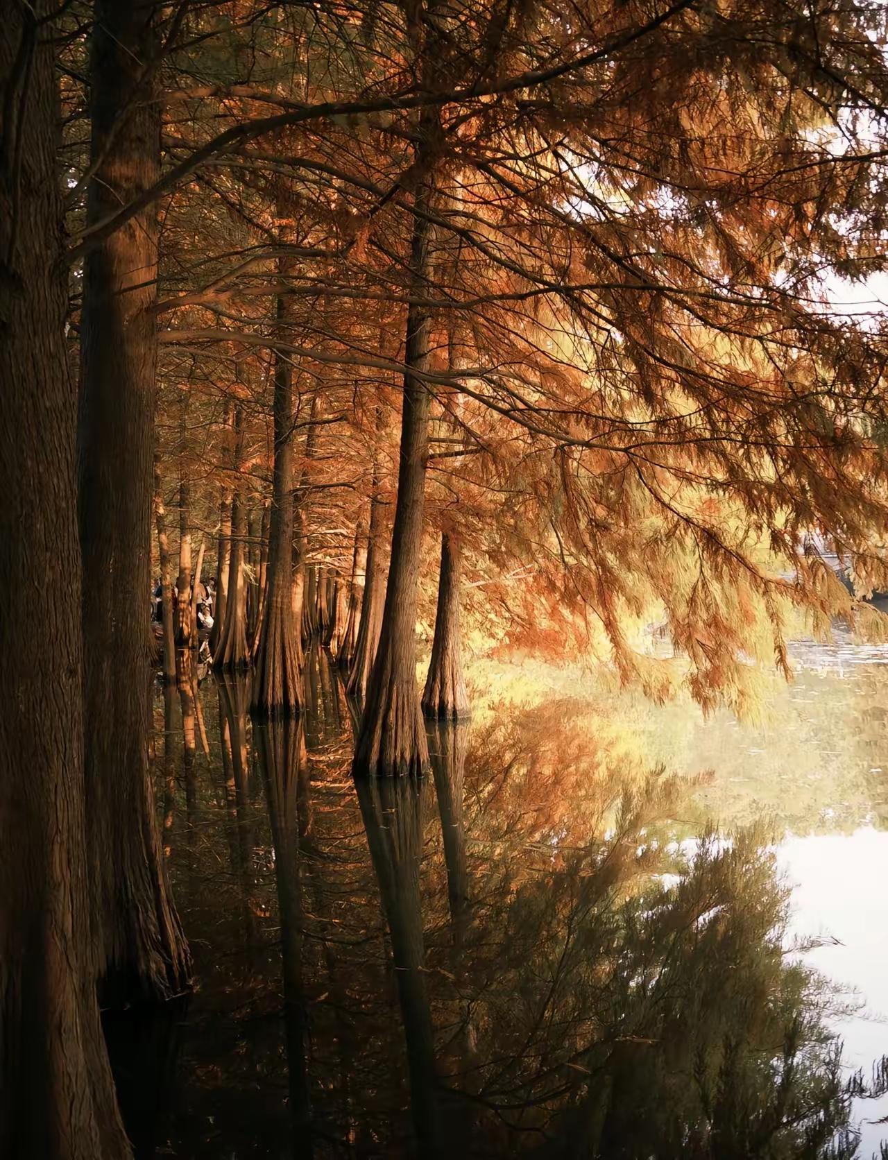这个时候,南京燕雀湖的落羽杉是最好拍的,谁拍都美,虽然没有全红,但五颜六色的层次感,倒映在水里,真是漂亮的移不开眼。 看过很多地方的红杉林,落羽杉林,有的面积达上千亩,但是跟南京明孝陵燕雀湖的落羽杉比起来,似乎总是差了一点灵气。 就像很多城市都有梧桐大道,但是谁又能跟南京陵园路的梧桐大道比肩呢。