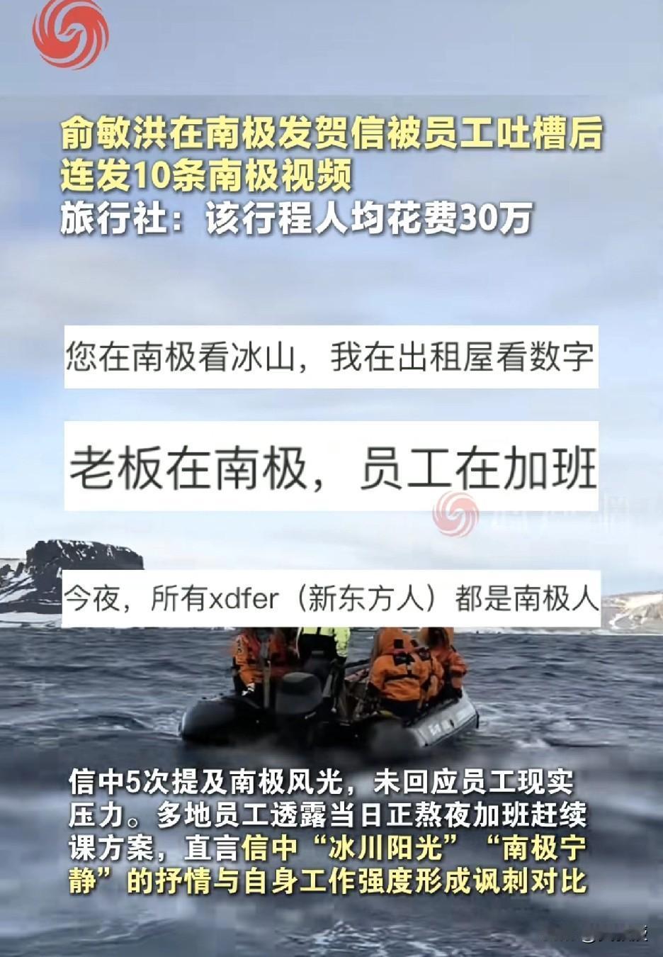 正常 有什么毛病 不然为什么大家要努力? 都吃大锅饭? 人人躺平? 这世界本就是如此 自己对自己能够逻辑自洽就是最好的 别人辛苦了一辈子 去趟南极,花了30万又如何? 不想干可以不在新东方干 我不知道这个员工的问题什么意思? 新东方来去自由