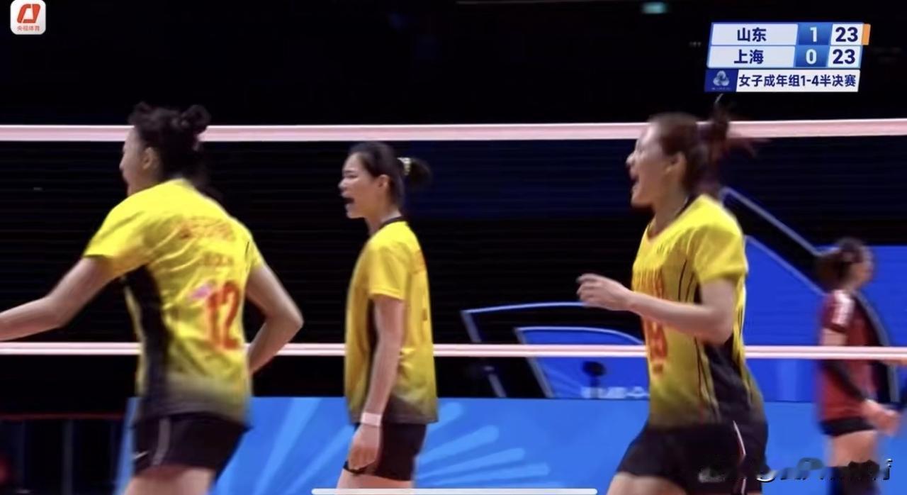 山东女排一只脚已经踏进决赛了!第二局局末王文涵替补上场立大功了,一个拦网一个探头直接逆转上海女排!上海女排的边攻手还是太软了,高意和薛翼枝快攻被重点照顾,已经被换下场了,场上乱成一团了!山东女排这个接应孙杰连续几场都是高光啊,感觉有点暴力接应的感觉,要提前恭喜山东女排进全运会决赛了!这支山东女排拼了这么多年,终于能进全运会决赛了!