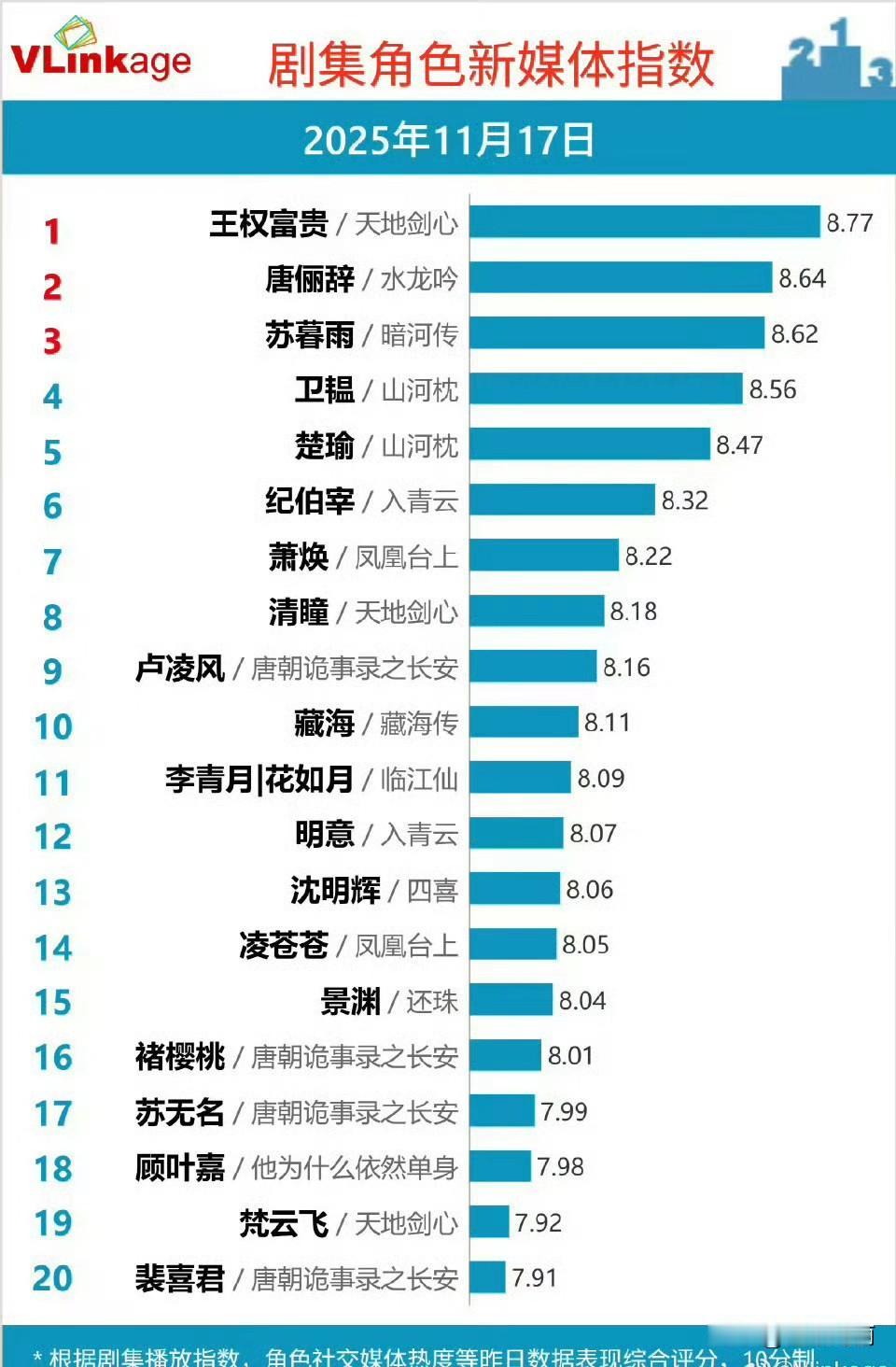 11.17v榜出来了成毅的王权富贵持续登顶!!!🐮完结这么久了,角色热度不