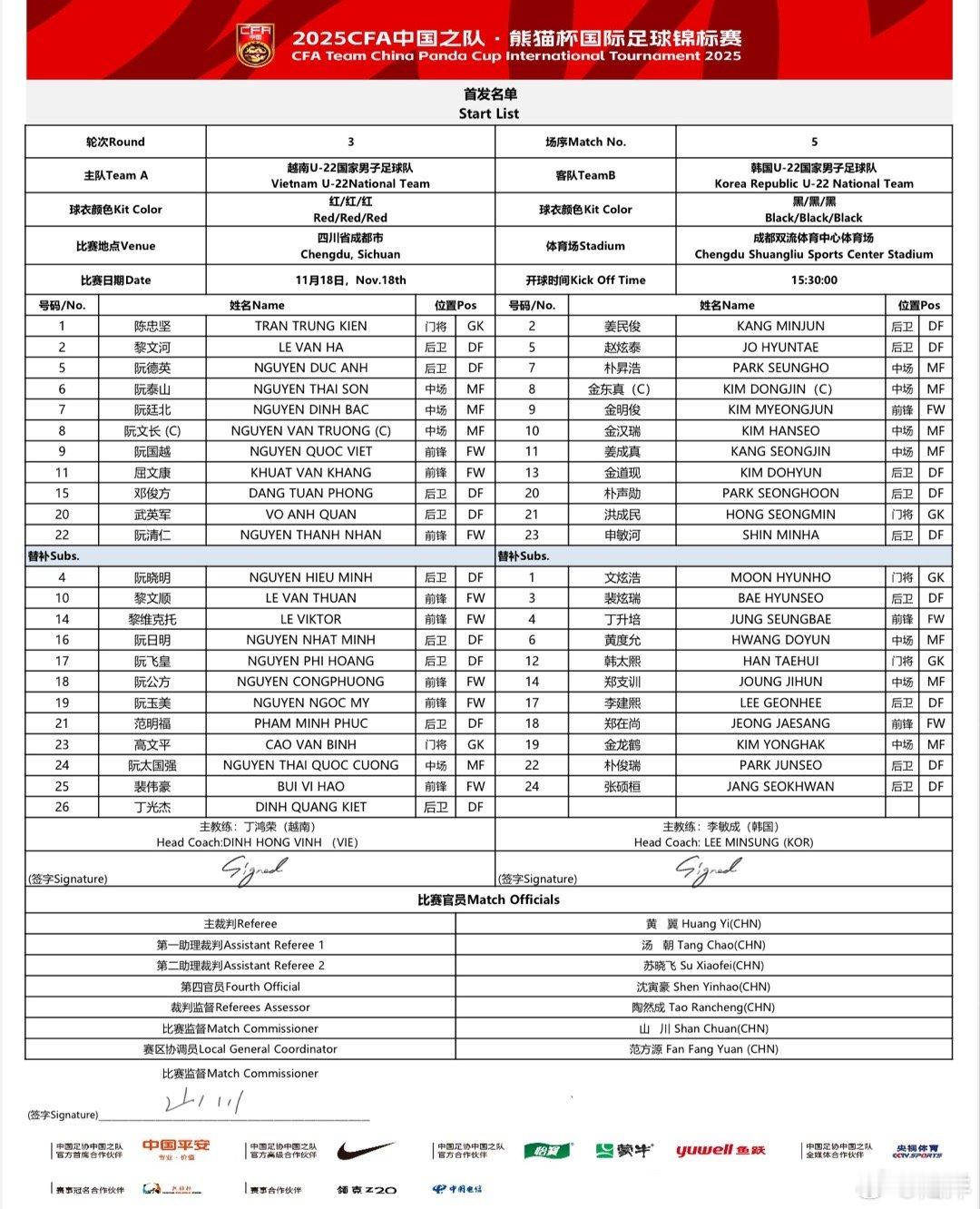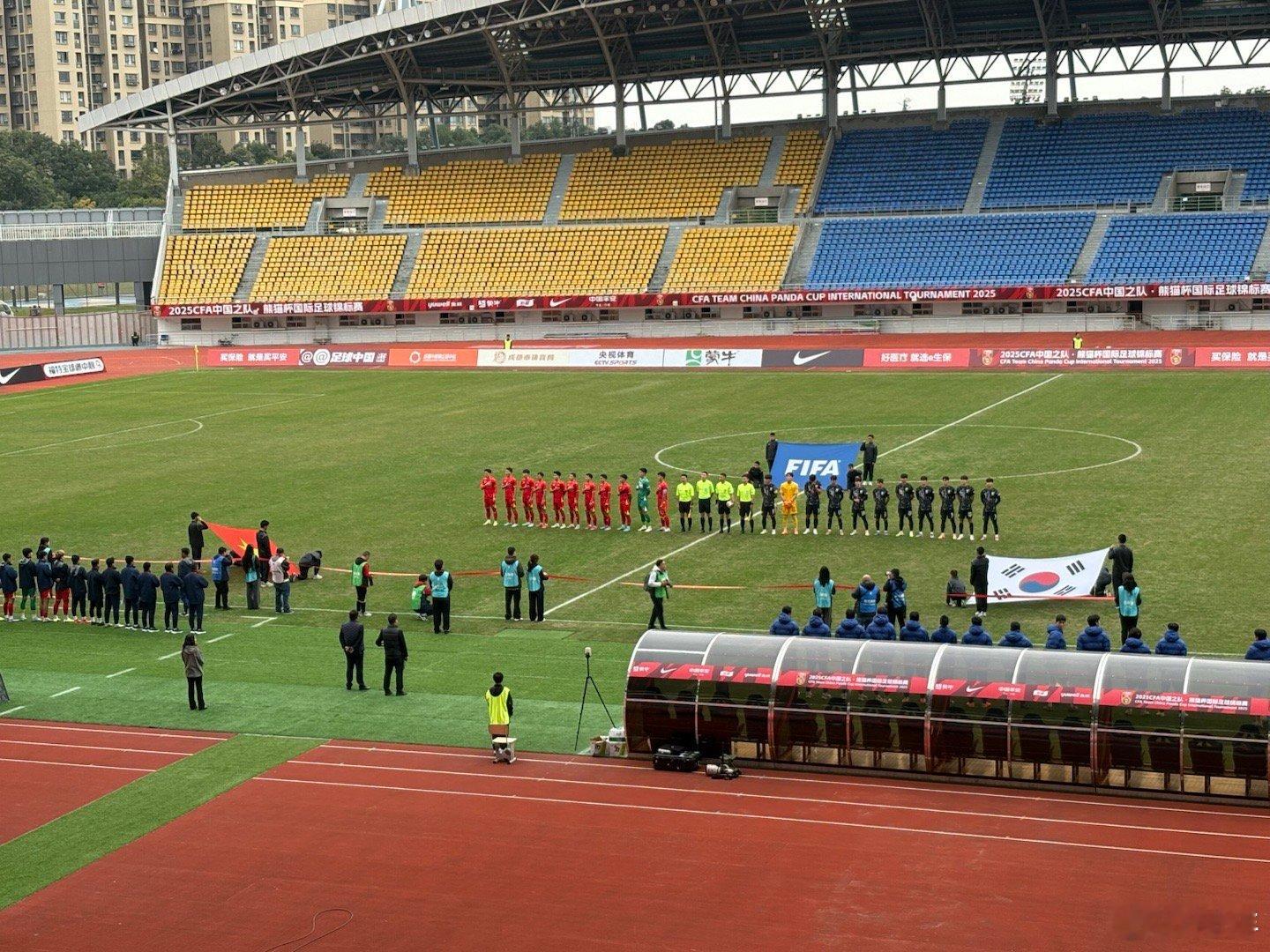 坐下准备看热闹,由于熊猫杯赛制同分比较胜负关系,所以这场如果越南取胜,中国队就铁定无缘冠军……还是希望韩国卖卖力气,冠军不重要,但是在有夺冠压力的情况下比赛,对球队来说是个很难得的历练机会。看首发貌似越南主力稍微齐一些,当然了这支韩国也没太大所谓谁是主力。