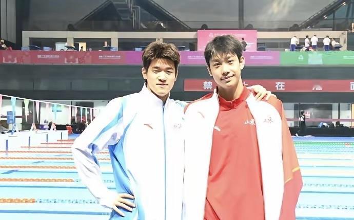 这张照片应该载入游泳运动的史册,在2025年的一场赛事,两位年轻的优秀运动员,站在泳池边留念! 一位意气风发,一只手搭在同伴的肩膀上,另外一只手卡在腰间,脸上带着自信满满的笑容。 另外一位身体向对方微微倾斜,面带谦逊的微笑,乖乖地垂手站立,就像邻家小弟一样讨喜。 一位在去年的巴奥横空出世,破了100米自由泳世界纪录,被誉为“世界飞鱼”。 一位在刚刚结束的全运会游泳比赛中,狂揽5金,成为这场赛事最大的黑马。 他俩一个21岁,一个只有18岁,风华正茂,前程似锦,在赛场上,他们是队友也是对手,在场下,他们英雄惺惺相惜。 他俩代表着中国游泳运动的未来,薪火相传,后继有人!