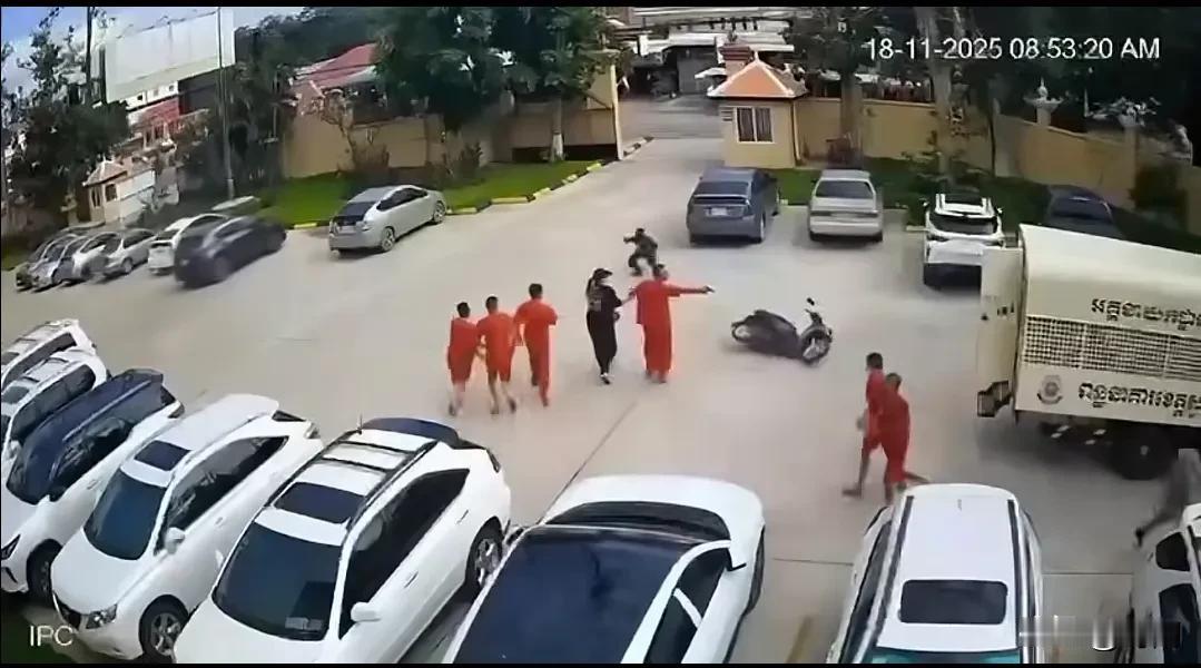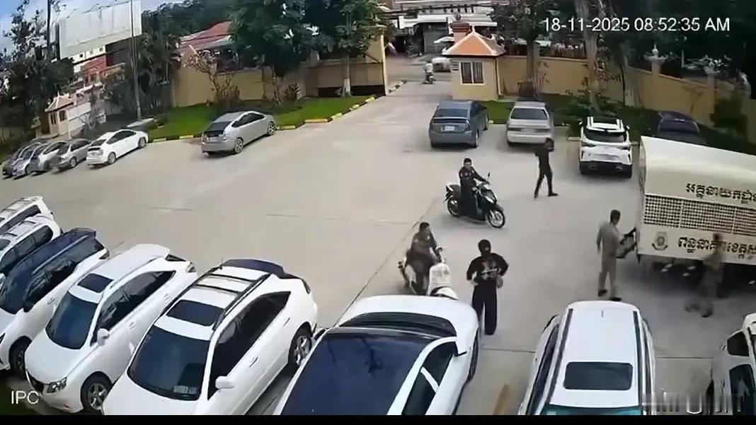 现场直播女子送枪到法院发生劫法场名场面,罪犯拿到枪后击退警员,6名犯人逃之夭夭。事发11月18日上午8点52分,在柬埔寨柴桢省初级法院内部,发生一起十分可疑的持枪劫囚事件。 通过监控拍摄发现,事发时法院内部安保松懈,电瓶车和无关人员随意进出,一名女子接过一电瓶车人员递过来的物品后站在路口等待着什么。随后押送囚犯的车辆到达,囚犯们依次下车准备进入法院。 突然这名女子将包里的东西塞给一名囚犯随后朝门口跑,原来是一把手枪。囚犯接过枪朝警员射击后全部逃离了法院,多名警员还在懵逼状态不知道如何追击,不过没有人员受伤。 据了解这些罪犯是越南籍人员,因涉嫌网络诈骗被捕,目前当地警方正在组织搜寻逃犯,已逮捕到一名主犯。 柬埔寨一法院发生持枪劫囚事件