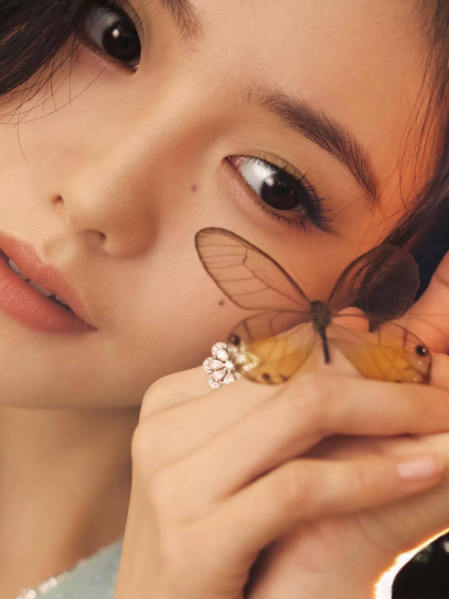 刘亦菲把死亡玫粉穿出了定制款的感觉,这种颜色普通人穿上分分钟黑三度,她居然能穿出