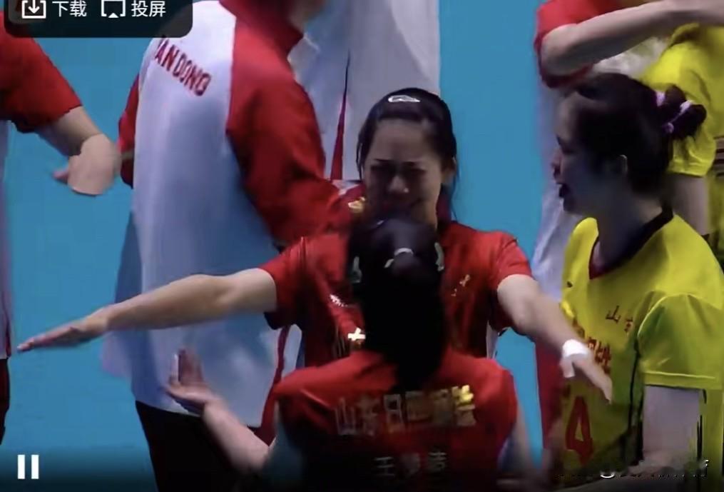 山东女排赛后哭成了泪人[流泪][流泪]本届全运会以黑马身份,一路过关斩将,历史首次进决赛!赛后姑娘们抱着教练哭得特别凶,小二传解盛钰抱着姐姐解盛钰哭,郭慧珍和王文涵抱头痛哭,为球队立下汗马功劳的接应孙杰也是泪流满面……山东女排蛰伏这么多年,今年终于是打出成绩了,这几个副攻手真的很实用啊,杨涵玉、王文涵、郭慧珍快攻一招鲜,上海女排真的一点办法都没有!有老将王梦洁后排防守兜底,孙杰、车文涵、杜清清几位攻手更安心!