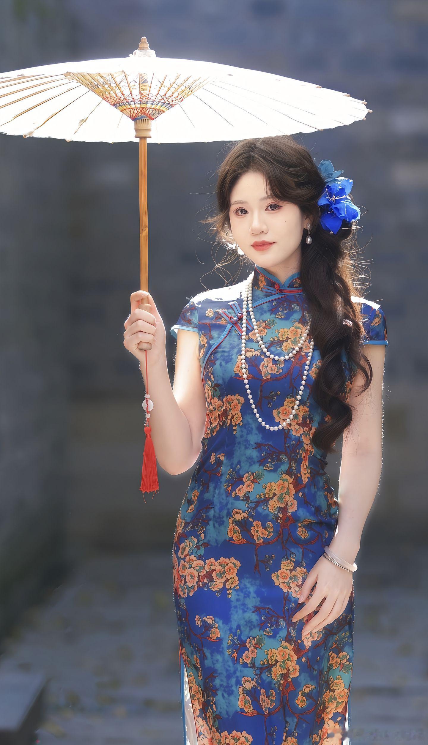 【一套旗袍三种美|把东方韵味穿进不同风景里】🌺第一张图粉墨登场:米白底旗袍