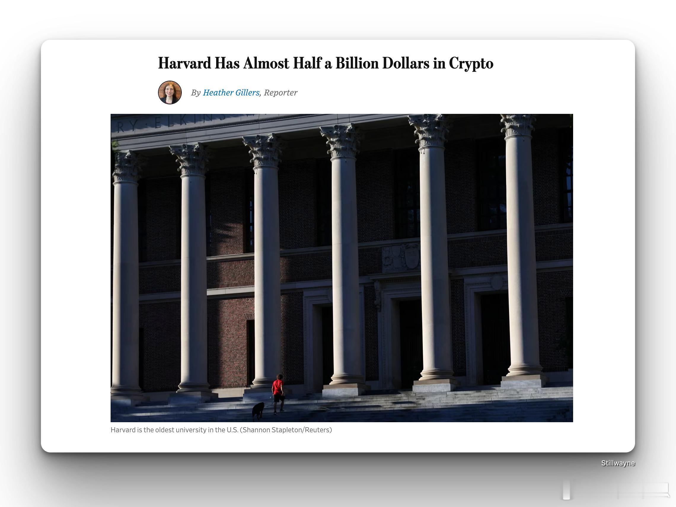 哈佛大学加仓比特币资产哈佛大学第三季度向贝莱德旗下的iShares比特币信托基金 IBIT 投资了4.43亿美元。目前持有680万股,高于第二季度的190万股。这笔资产的金额略低于该校570 亿美元捐赠基金的 1% 。