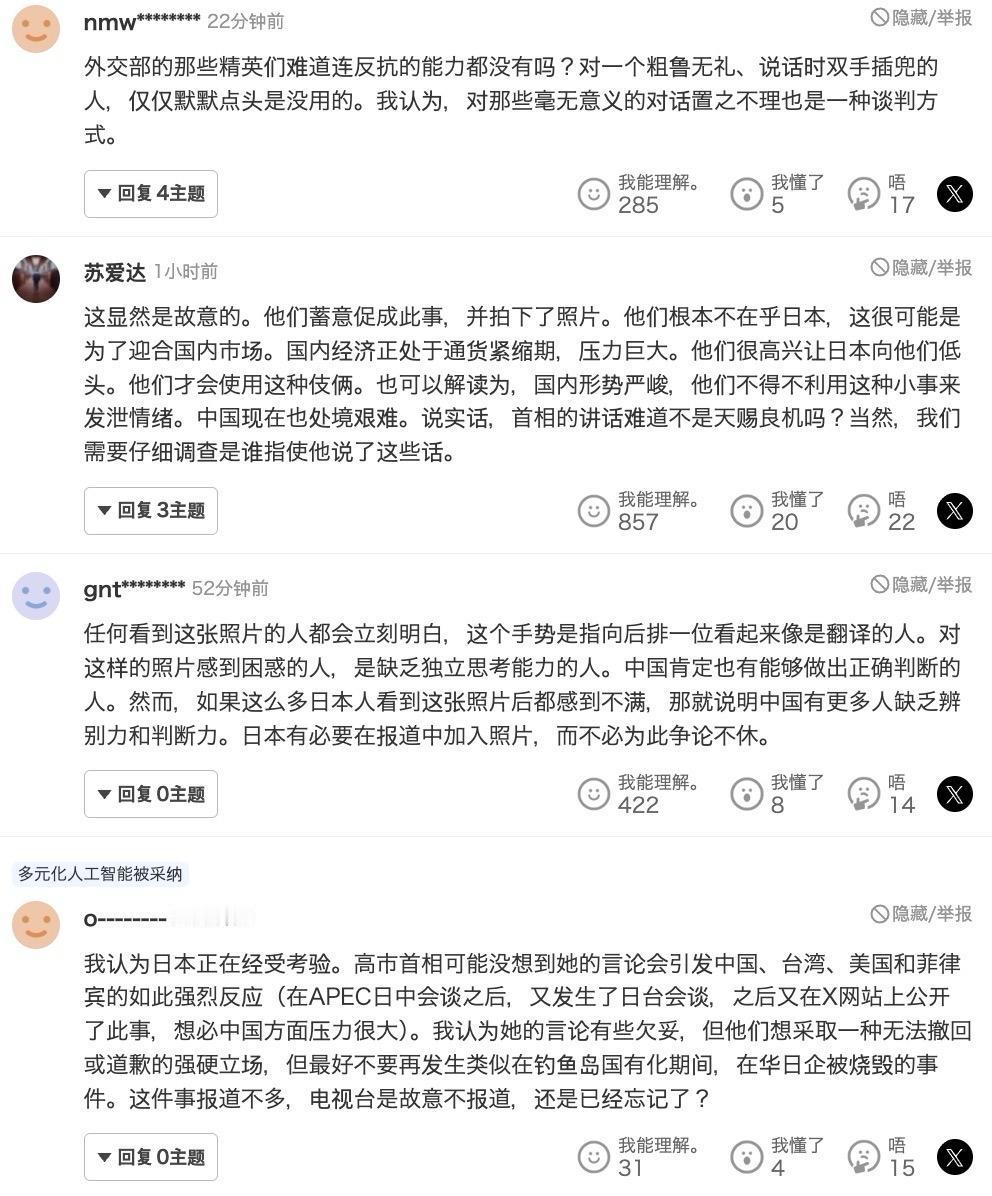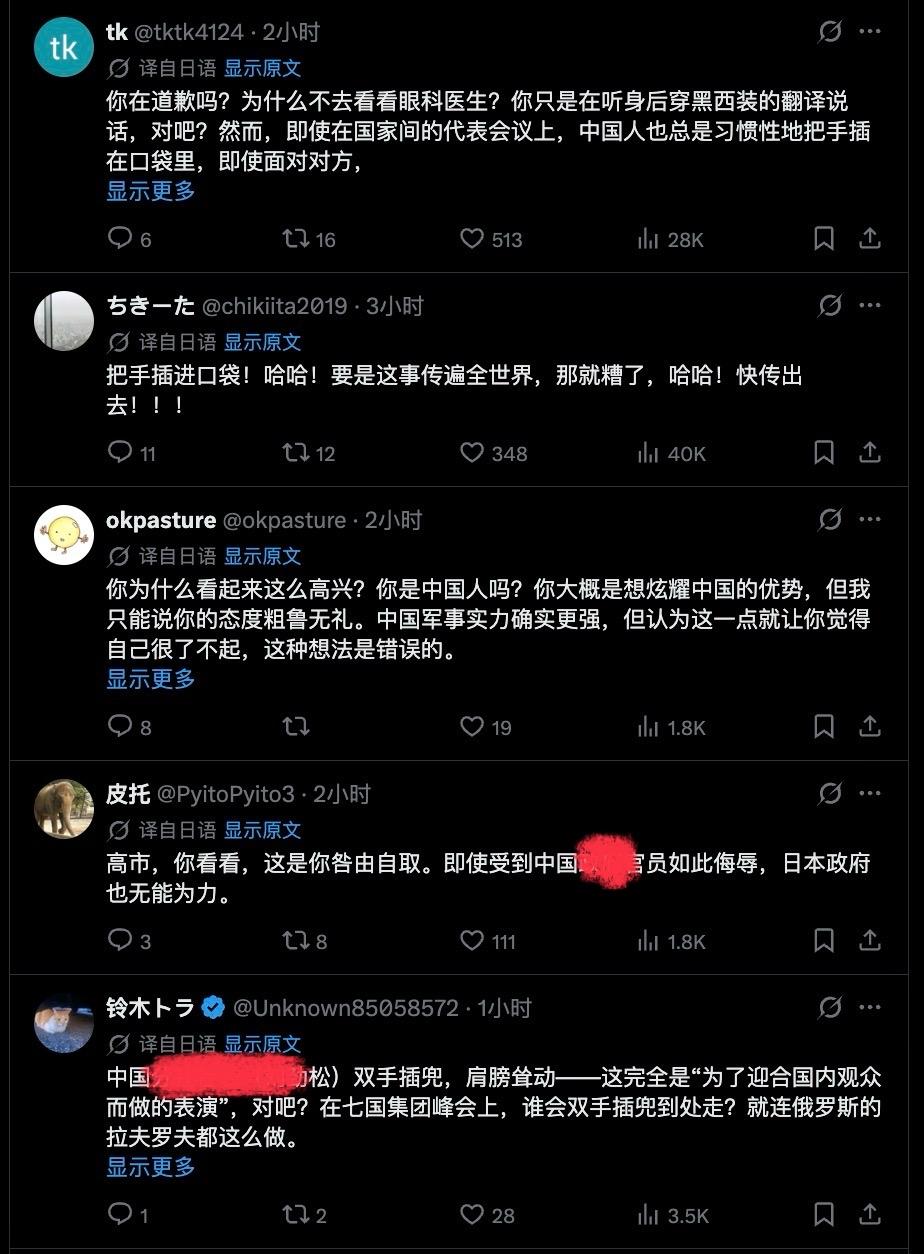 日本网友炸锅:日方外交官像犯了错的小学生低头被中国老师当面训斥。 日本外交官“俯首帖耳”的视频传到日本后,日本人彻底炸锅了。日本时事通讯社的一名记者也在现场。他在X上表示,当两人出现在大厅并停下脚步时,中方官员双手插兜,而日方官员则低头聆听着中方官员的讲话。二人级别一样,他认为中方官员表现出了傲慢神情。 日本民众在视频里看到,日本外务省官员对前来送别的中方官员表现出“俯首帖耳”。一位日本网红愤怒地表示,“这就像是老师在训斥犯错了的学生一样,而学生在不停地低头承认错误。”一位日本网友在雅虎新闻网站留言称:“如果首相不收回言论并道歉,官僚们将别无选择,只能低头认错。” 当然,很多日本民众在评论中批评中方官员非常不礼貌,没有基本的外交礼仪。这只不过是日本民众对日本外交官面对中方“软弱无能”表现的批评而已。 但本府认为,日方官员赴华是来给局势降温灭火的,说到底是来给其首相“擦屁股”的。从中日官员的神情举止能看出来,我方是底气十足的,而日方是理亏的,这就是中日两国的实力在官员身上的外化体现。这个视频和画面将是历史上中日实力翻转的见证。百年前我外交官在面对日方官员的倨傲神态时何尝不是今天日方外交官的“低头哈腰”呢? 日本评论中国 大国风范外交官 日本高官访华有何深意 台湾有事论 日本官员访华能否改善中日关系