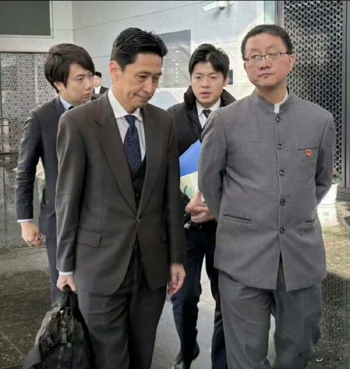 太霸气了!中国官员站得笔直,胸前国徽亮眼,双手插兜气场全开。 日本官员低头侧身,全程只点头不吭声。 日本官员来北京解释涉台言论。 中方直接甩脸:对会谈结果不满意。 日方派来的只是个事务官,根本没决策权。 中方只安排同级官员见面,摆明不想给面子。 在台湾问题上玩火,派个小卒子来灭火? 门都没有。 这场外交交锋的潜台词够狠: 要么换能拍板的人来谈,要么免谈。