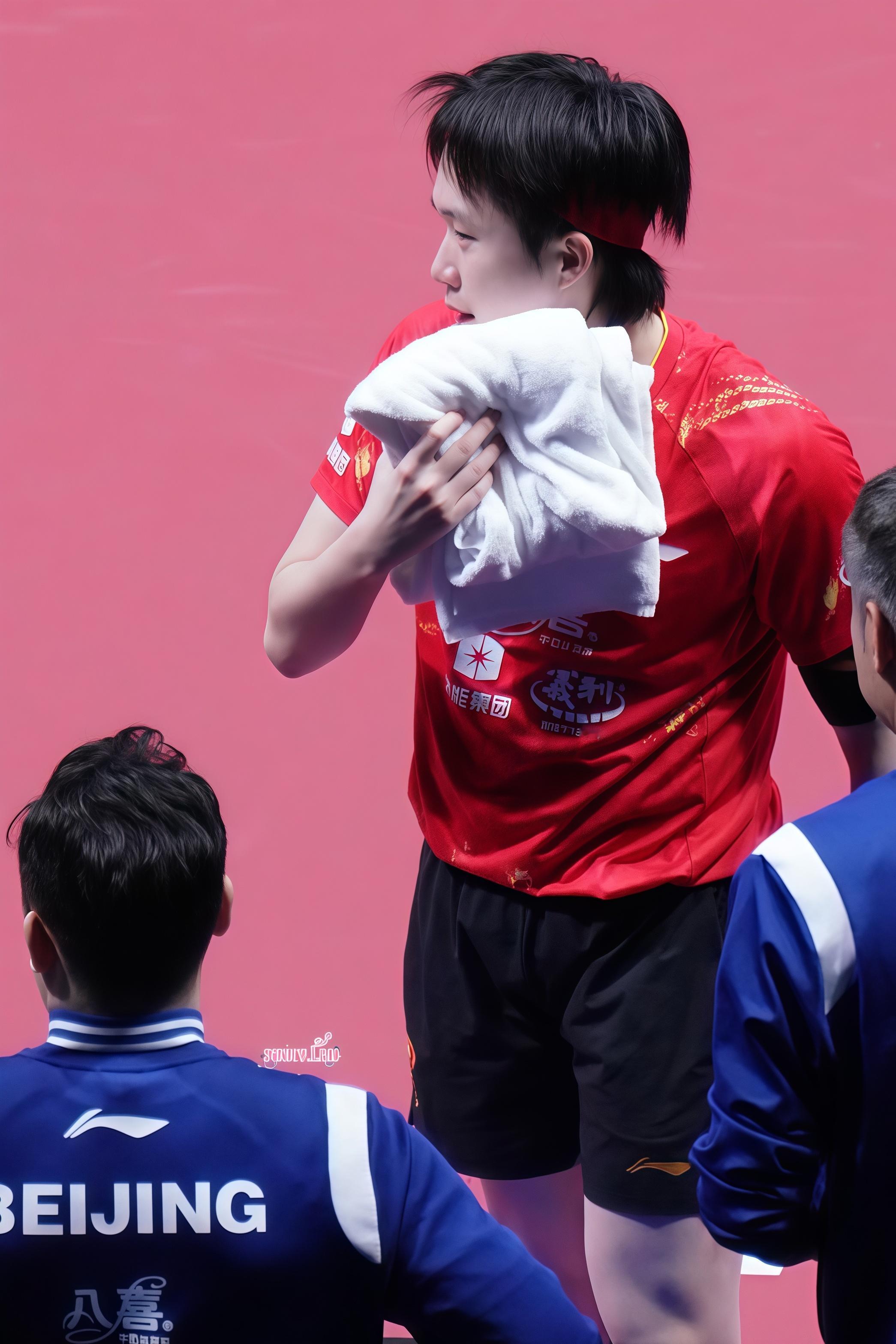 紅色的髮帶配上紅色的球衣好好休息決賽見!