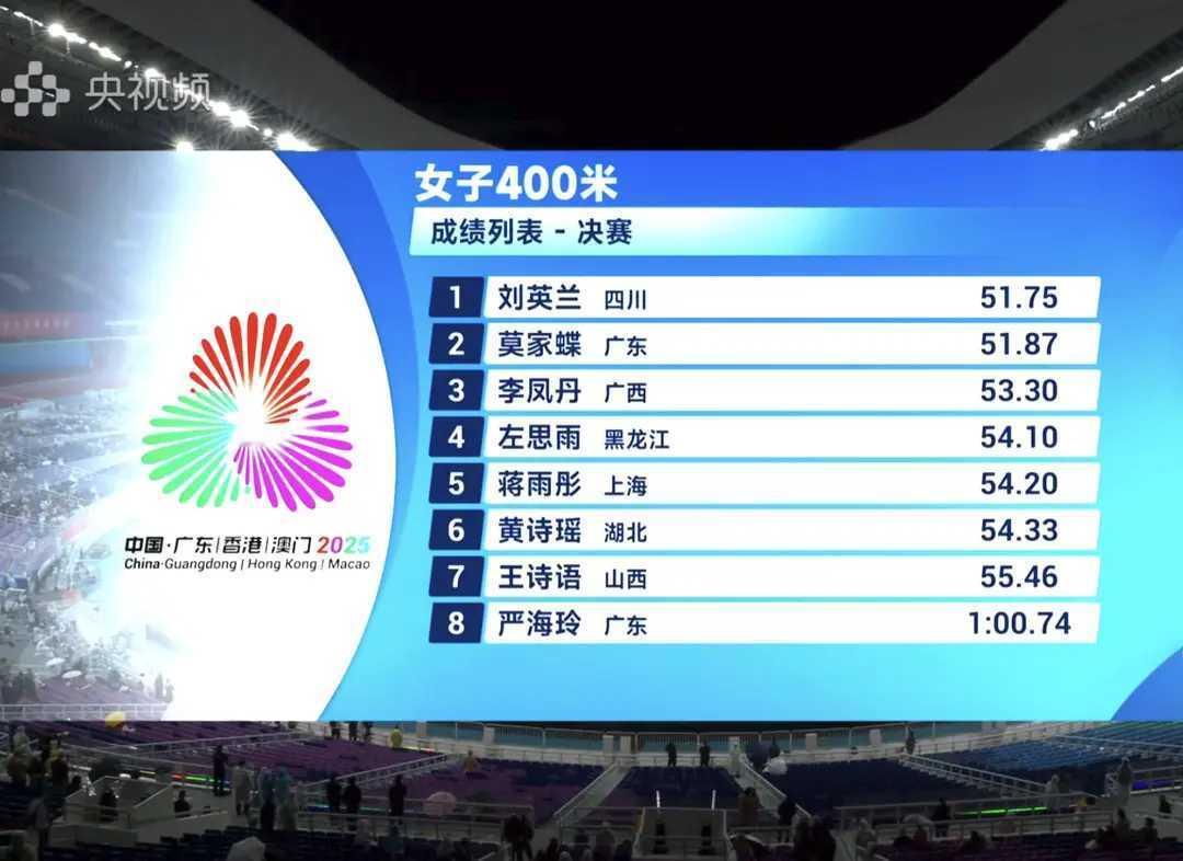 0.12秒极限反超!20岁刘英兰雨战爆冷夺金,51秒75刷新PB逆袭莫家蝶 11月18日晚,第十五届全运会田径女子400米决赛在广东奥林匹克体育中心上演巅峰对决。20岁四川小将刘英兰在11℃低温+持续降雨的恶劣条件下,以51秒75的成绩刷新个人最佳(PB),在最后3米完成极限反超,以0.12秒的微弱优势爆冷击败夺冠热门、国内该项目领军人物莫家蝶,为四川代表团斩获田径金牌。作为东道主名将,25岁的莫家蝶赛前手握混合接力、400米栏两枚全运金牌,且在今年全国锦标赛中以51秒74的成绩实现400米七连冠,是公认的夺冠最大热门。而首次跻身全运女子400米单项决赛的刘英兰,半决赛仅以53秒97排名第五晋级,赛前并不被看好。但这场雨战让局势充满变数,湿滑跑道对选手的节奏控制和冲刺发力提出了极高要求。决赛鸣枪后,莫家蝶迅速进入状态,凭借标志性的稳定节奏领跑前300米,刘英兰则紧随其后保持紧凑跟跑,两人逐渐拉开与其他选手的差距。进入最后100米直道,莫家蝶仍占据微弱领先优势,就在全场以为冠军尘埃落定时,刘英兰突然提速,步频骤增发起冲击。终点线前,她以半个身位完成关键反超,压线瞬间刷新个人PB,将金牌收入囊中。广东选手莫家蝶以51秒87摘银,广西选手李凤丹以53秒30获得铜牌。值得一提的是,这已是刘英兰与莫家蝶三天内的第二次直接对话——此前的4×400米混合接力决赛中,莫家蝶曾凭借经验险胜刘英兰领衔的四川队,而此次单项对决,年轻小将成功完成复仇。“太激动了!没想过能在雨战中突破自己。”赛后刘英兰难掩喜悦,她透露低温湿滑的赛道让每一步都充满挑战,但全程紧盯莫家蝶的节奏,坚信自己的冲刺能力。这位来自四川德阳的小将素有“五金刘”之称,曾在学青会包揽五枚金牌,此次全运夺冠更是她职业生涯的重要突破。