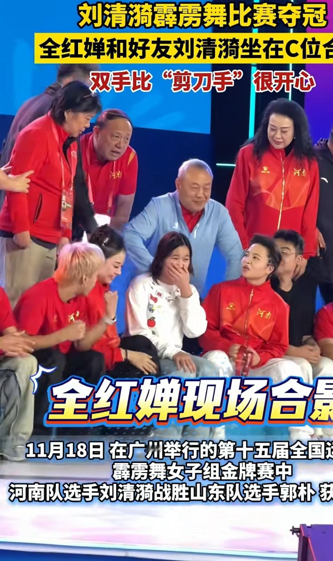 11月18日,全红婵作为嘉宾观看霹雳舞比赛,比赛结束后,她在合影的时候坐在了最中间位置。 全红婵当天穿的也比较可爱,穿着白色长袖,衣服上印有可爱的娃娃,穿着灰色休闲裤和灰色运动鞋,头发简单梳理了一下,没有使用任何装饰品,嘴角处的黑痣依然特别明显。 全红婵巴黎奥运会后,还学习并展示过霹雳舞,这次专程来抽出时间看比赛,这也是她放松解压得时候,只是一名开心看比赛的观众。