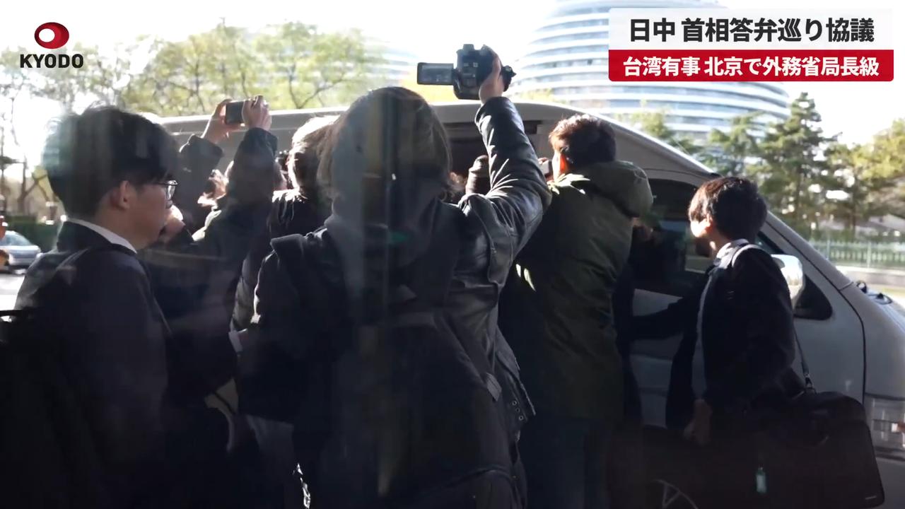 从日本电视台视角看传世名场面: 我们的刘劲松司长与主动上门拜会的日本外务省亚洲大洋洲局长(名头不小)金井正彰,在会谈结束走出外交部大楼的画面,被日本电视台传送回了日本。 金井正彰出来后依然是不停点头、弓着背哈着腰,好不容易才上了那辆货拉拉。他或许终于能松口气了,毕竟自己也只是走个外交流程。家里的车力巨人就算要掀桌子,他也是无能为力的。