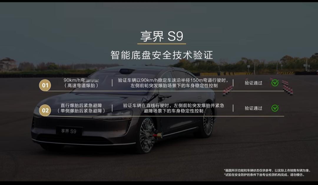 我一直想不明白,享界S9这么好的一款车,华为鸿蒙智行9系旗舰之一,要颜值有颜值,要性能有性能,要黑科技有黑科技,要安全也安全,怎么就一直不温不火呢? 这不,刚刷到享界S9的技术验证视频,展示了其在极端工况下的安全性能,也用实力证明了余承东所说的安全是最大的豪华。 享界S9的第一项测试是90km/h弯道爆胎测试。在弯道半径150米、干燥且附着系数≈0.9的专业测试赛道上,车辆加速至90km/h进入弯道,此时左前轮胎被触发爆胎,产生大量蓝色烟雾,胎压显示为0.0bar。但借助“迅捷执行轮胎扭矩矢量分配”技术,同时联动“电机+制动援+转向助力接口协同控制”,车辆保持转向及时、车身平稳,沿着弯道轨迹稳定行驶,最终顺利通过弯道。 第二项是直行爆胎后紧急避障测试。场地设置了多个交通锥,形成宽度2.45m、3.0m的避障区域,车辆高速直行接近避障区域时,左前轮胎爆胎并产生蓝色烟雾,系统根据爆胎位置、车辆载荷分布、实时车速等参数动态调整干预策略,精准控制车身姿态,成功穿越狭窄的避障区域,全程车身稳定未失控。最终这两项测试均通过验证,享界S9获得2025智能底盘安全技术验证证书,展现出在极端爆胎工况下的出色安全性能。 看来,S9一年前遭遇袁大佐恶意“飞坡”的负面影响还没有完全消除啊!华为入局智驾的鲶鱼效应 享界s9
