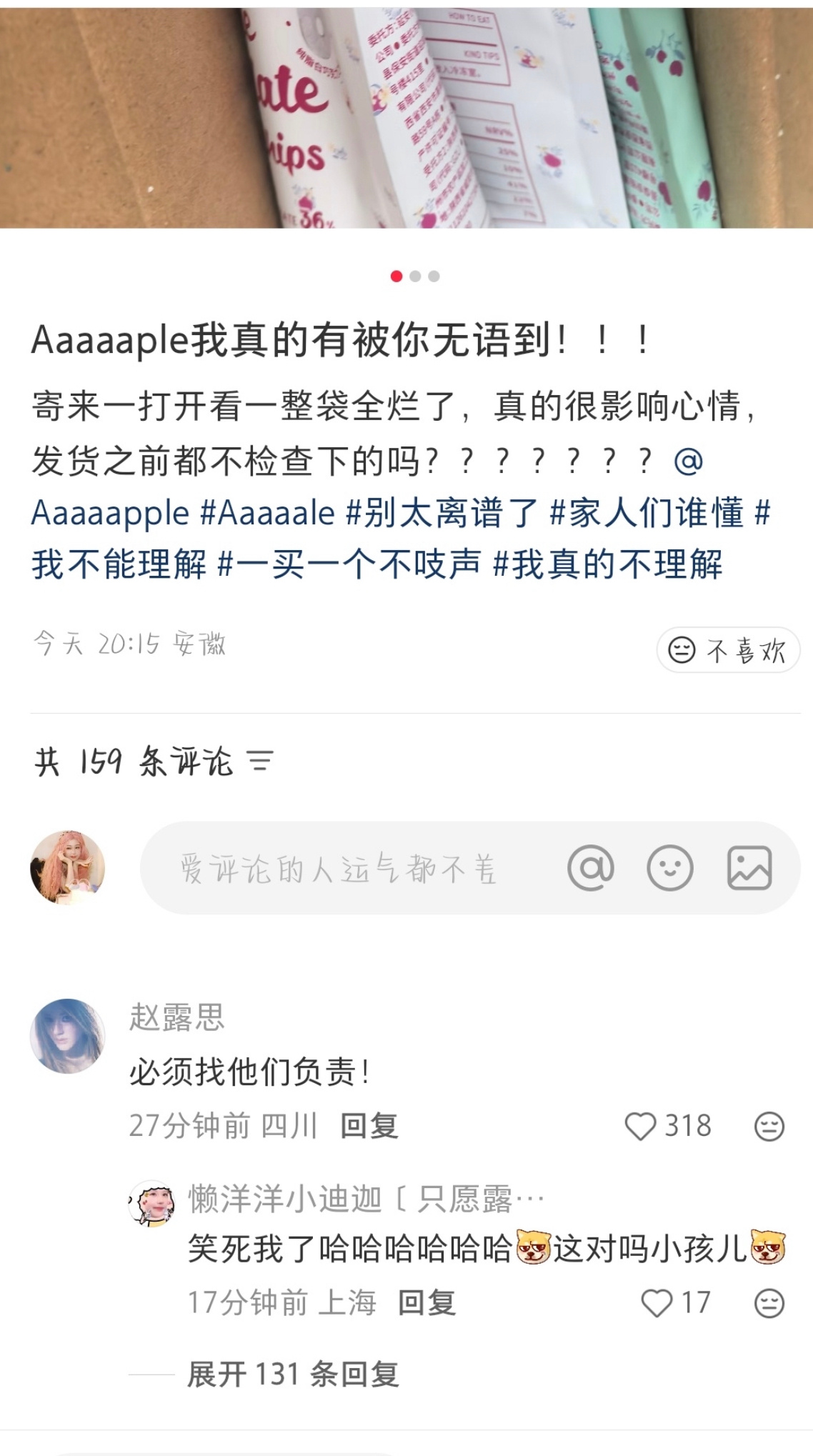 赵露思出来回应了网友说5a这个品牌质量不行赵露思说必须找他们负责!