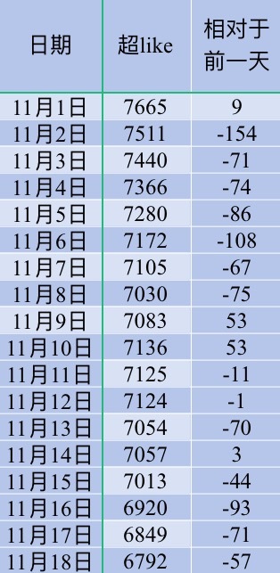 wxy 昨天的超喜欢下降的稍微有点多啊 今天的超喜欢底数也下降了 昨天的发帖人数