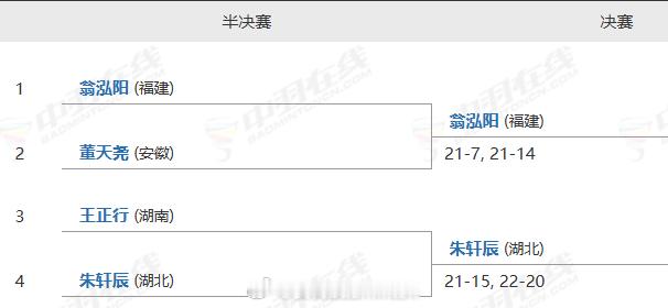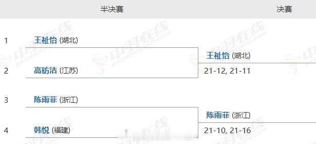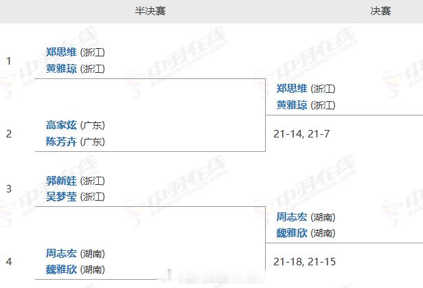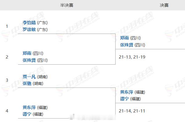羽毛球单项半决赛完整赛果