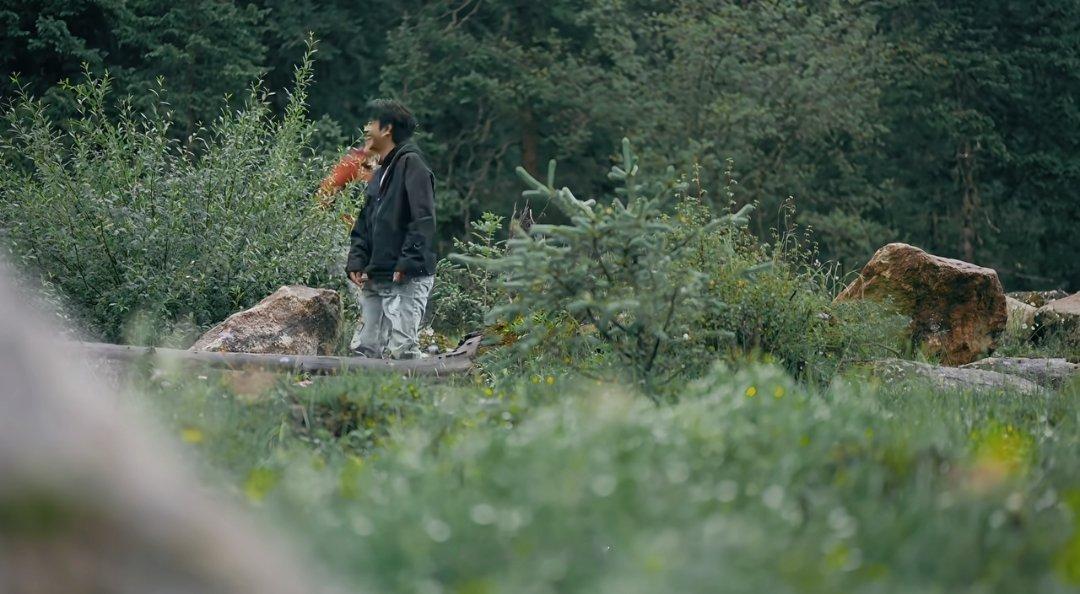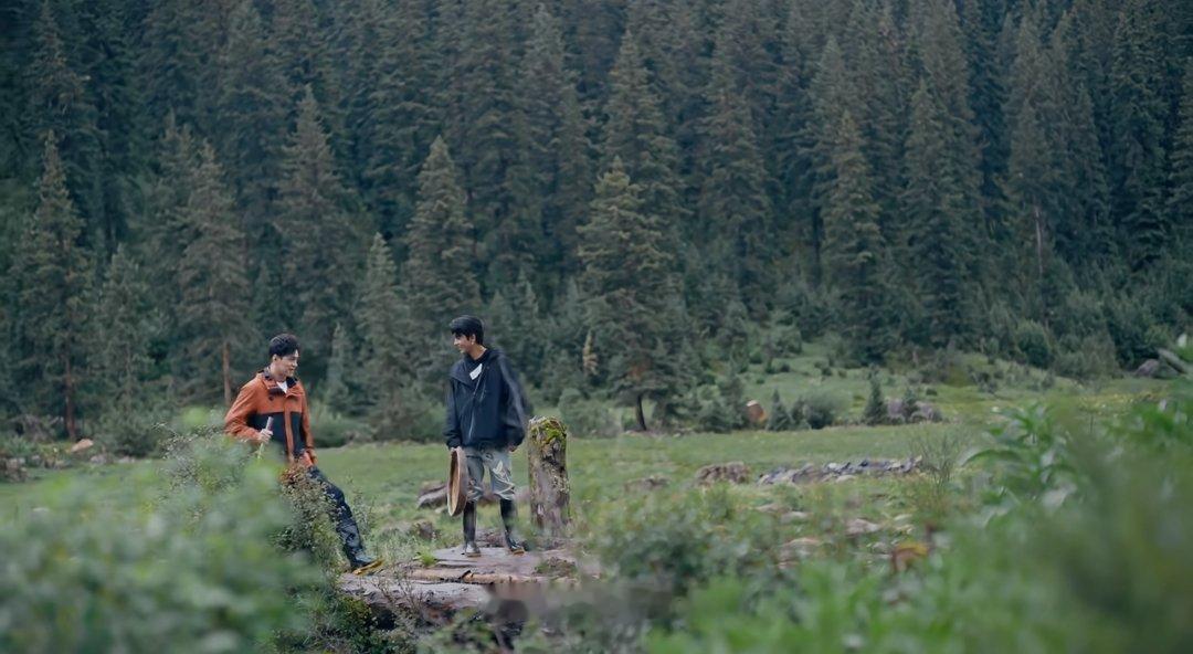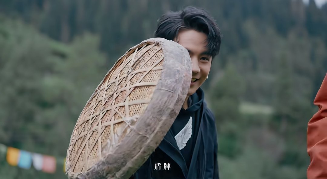 《寻真之地》孙杨与丁真在节目中碰面,丁真躲起来让孙杨找,途中玩起了盾牌,充满了率