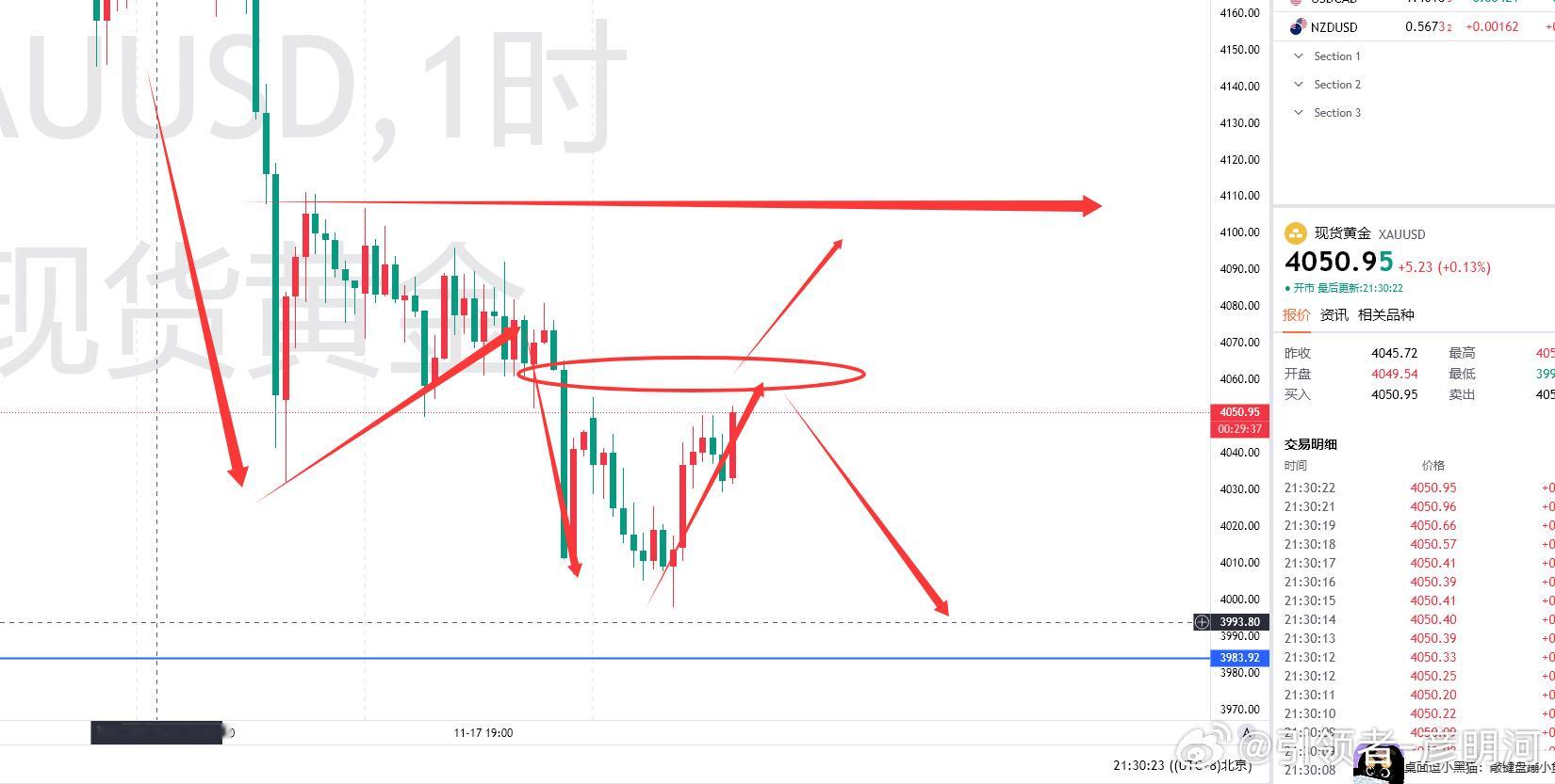 黄金我一直提到的4050位置上来之后行情将会重新去测试4070,内部第一时间跟进
