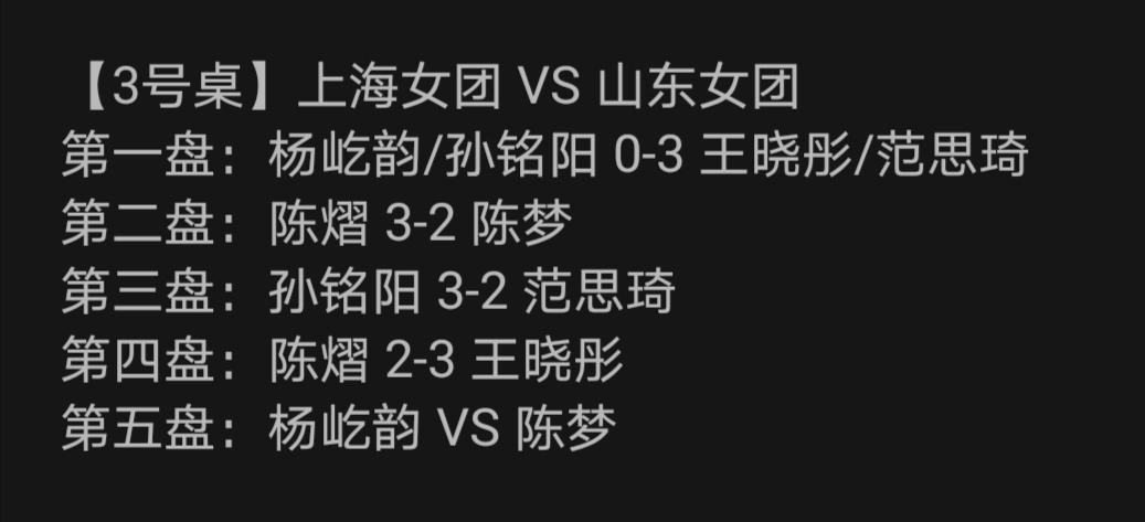 奥运双冠陈梦一天打了两场“决胜盘”的比赛,确保山东女团晋级决赛! 白天全运会乒乓球女团1/4决赛 山东队3:2胜湖南队,耗时3小时20分钟! 山东陈梦双打失分,单打补! 决胜盘陈梦3:0胜湖南赵阁! 大梦确保山东女团晋级四强! 晚间全运会乒乓球女团半决赛,山东队又是鏖战五盘! 山东队3:2胜上海队! 陈梦不打双打了,改打单打,客队1单。 先是大梦2:3负上海陈熠! 前四盘都打满五局,这创造了全运会乒乓球团体赛的记录吧! 决胜盘山东陈梦自我救赎! 大梦3:0(13-11;11-6;11-6)横扫上海削球手杨屹韵。 全场比赛耗时4小时20分钟! 大梦又确保山东女团晋级决赛! 全运会乒乓球女子团体决赛 山东队Vs河北队