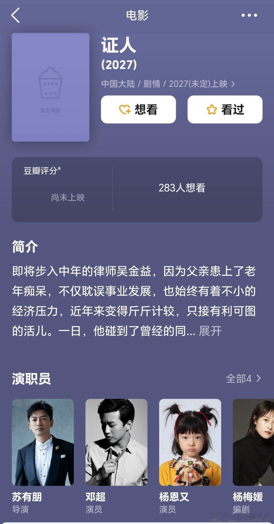 苏有朋还有一部证人至今没开起来,现在找tz好难