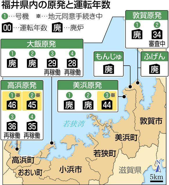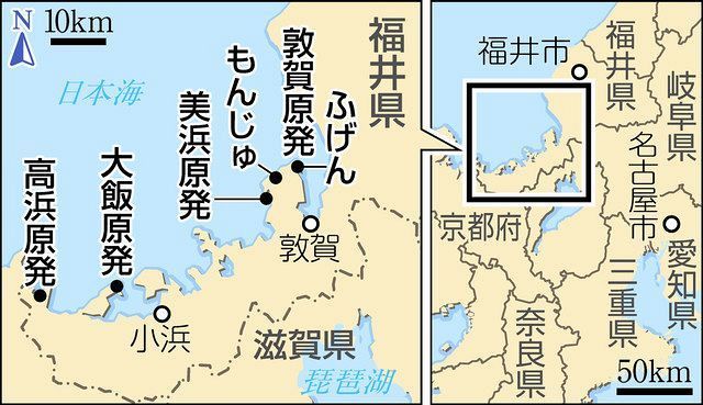 若狭湾原子能发电站过于密集,如果算上敦贺的话有四座(美浜、大饭、高浜)。日本全国有17个原子能发电站的话,福井县就占了约四分之一,被戏称为“原发银座”。
