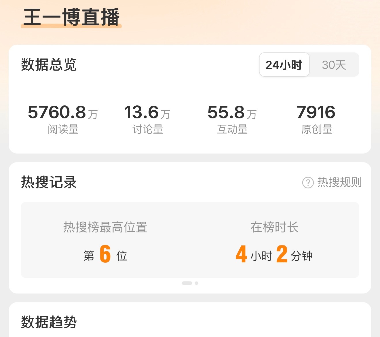 探索新境2首映会:工作日下午双平台在线观看人数800w+✅仅靠预告预热站内热度12000➕✅泰趋2、3,世趋6、8!wb热搜第六✅官宣定档24小时曝光7.5亿✅