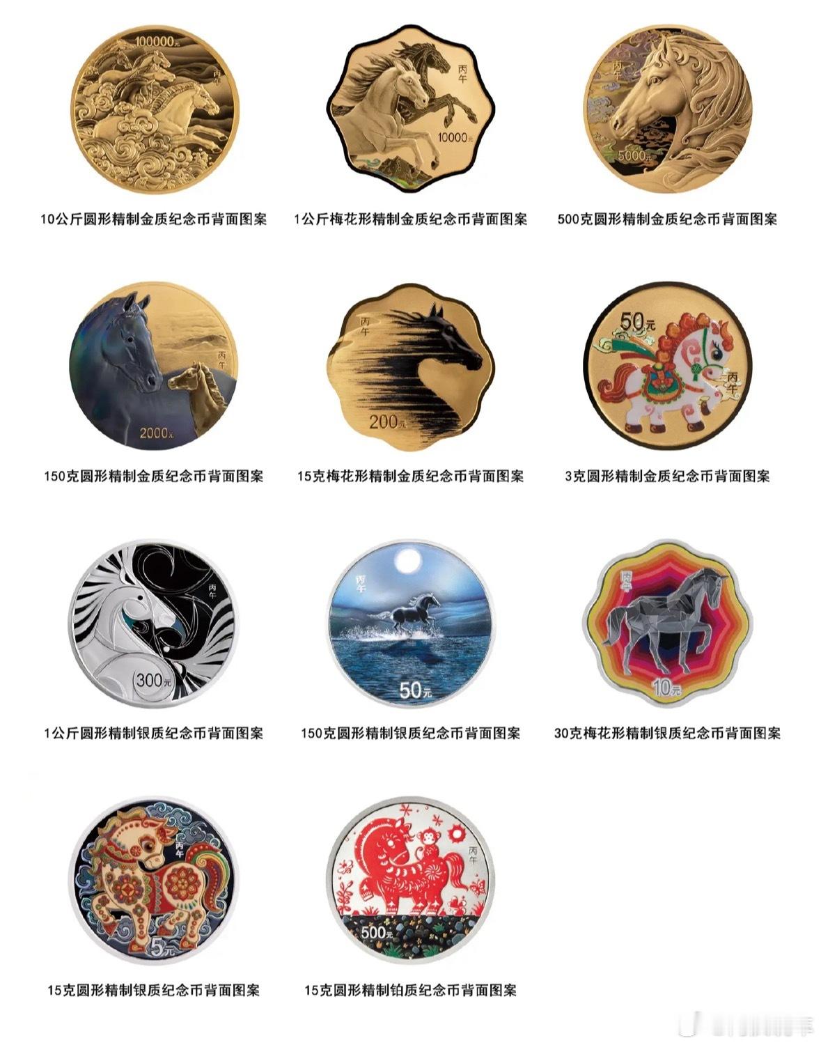 马年纪念币这颜值杠杠的,一共发布了11枚,6枚金质纪念币,4枚银质纪念币,1枚铂金纪念币,这次也是首次引入铂金材质。怎么样就这个颜值今年不得预约一波?