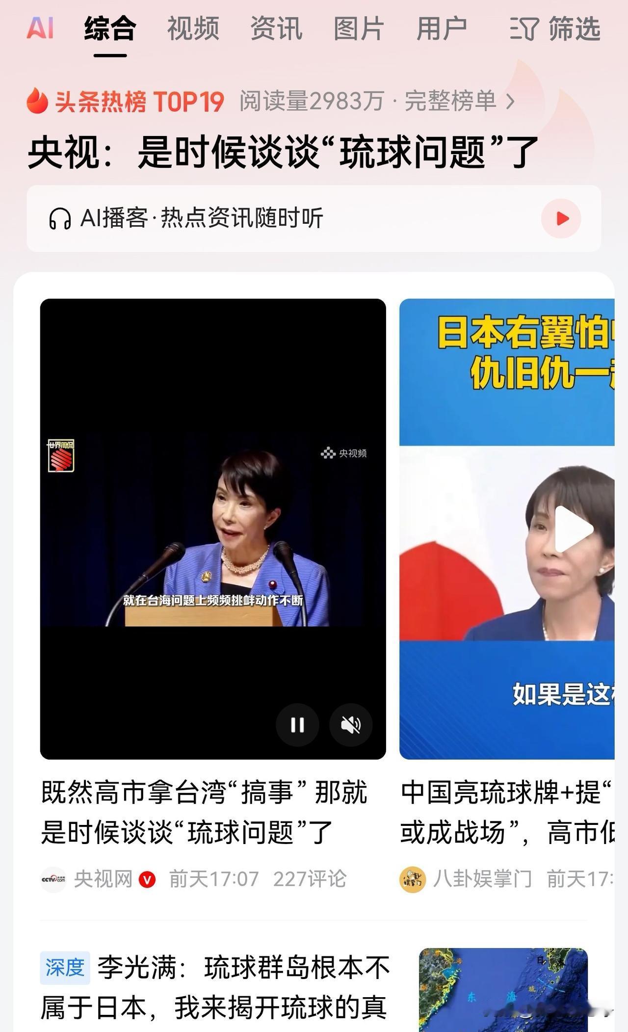 央视都已经把话说到这个份上了,你还看不清风向吗? 央视公开喊话全世界是时候聊一聊琉球问题了。 那么琉球问题有什么可聊的呢? 因为琉球这个国家咱们从来都没有承认过它亡国。 我们永远都不承认美国和日本对琉球的非法占领。 二战之后各种公告明确表示日本必须撤出所有占领领土。 恢复那些原有国家的主权。 比如说朝鲜主权就是二战之后恢复的。 琉球这个国家也是被日本人灭掉的,那么也应该按照二战法律规定合法的恢复。 但是后来美国人看上了这里的战略位置。 再加上朝鲜战争爆发,他们开始打造第一岛链封锁中国。 所以就默认了日本对琉球的占领,并且在琉球修建大规模的军事基地。 也就是说美日联手非法占领了琉球群岛,违反了二战法律规定。 可是过去架不住美国势力太庞大了。 你反对也没什么用。 所以这个问题就搁置到了现在。 但是问题被搁置不代表问题被解决啊。 咱们国家可从来不承认日本对琉球的非法占领。 咱们是支持琉球古代王国复国的。 琉球这个国家应该也必须恢复主权。 大明洪武皇帝亲自册封的琉球王国,不应该亡在日本人的手里。 咱们国家现在及时的提出了这个问题。 就是给全世界提个醒。 将来跟日本人算旧账的时候,琉球的问题是一定要算的。 希望全世界做好心理准备!