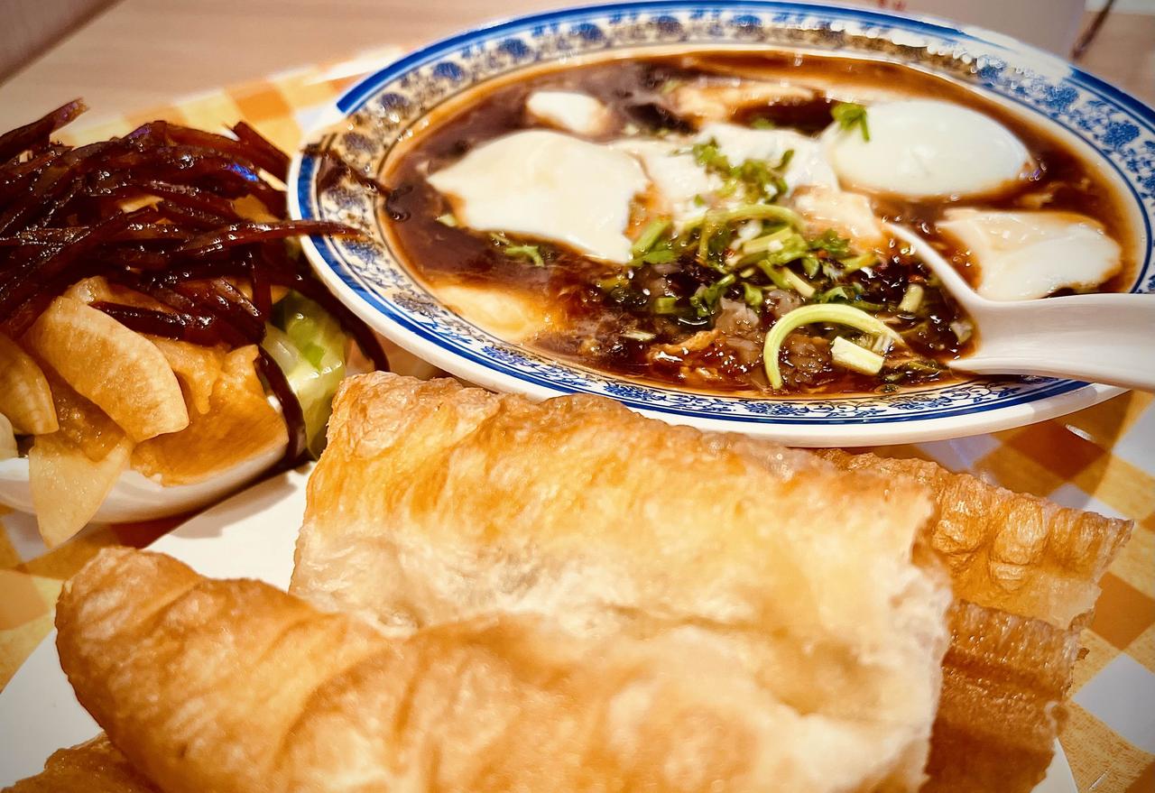 一大早赶火车出差,在火车站附近,匆匆忙忙吃了份早餐。油条不错,酥香适口不油腻,豆