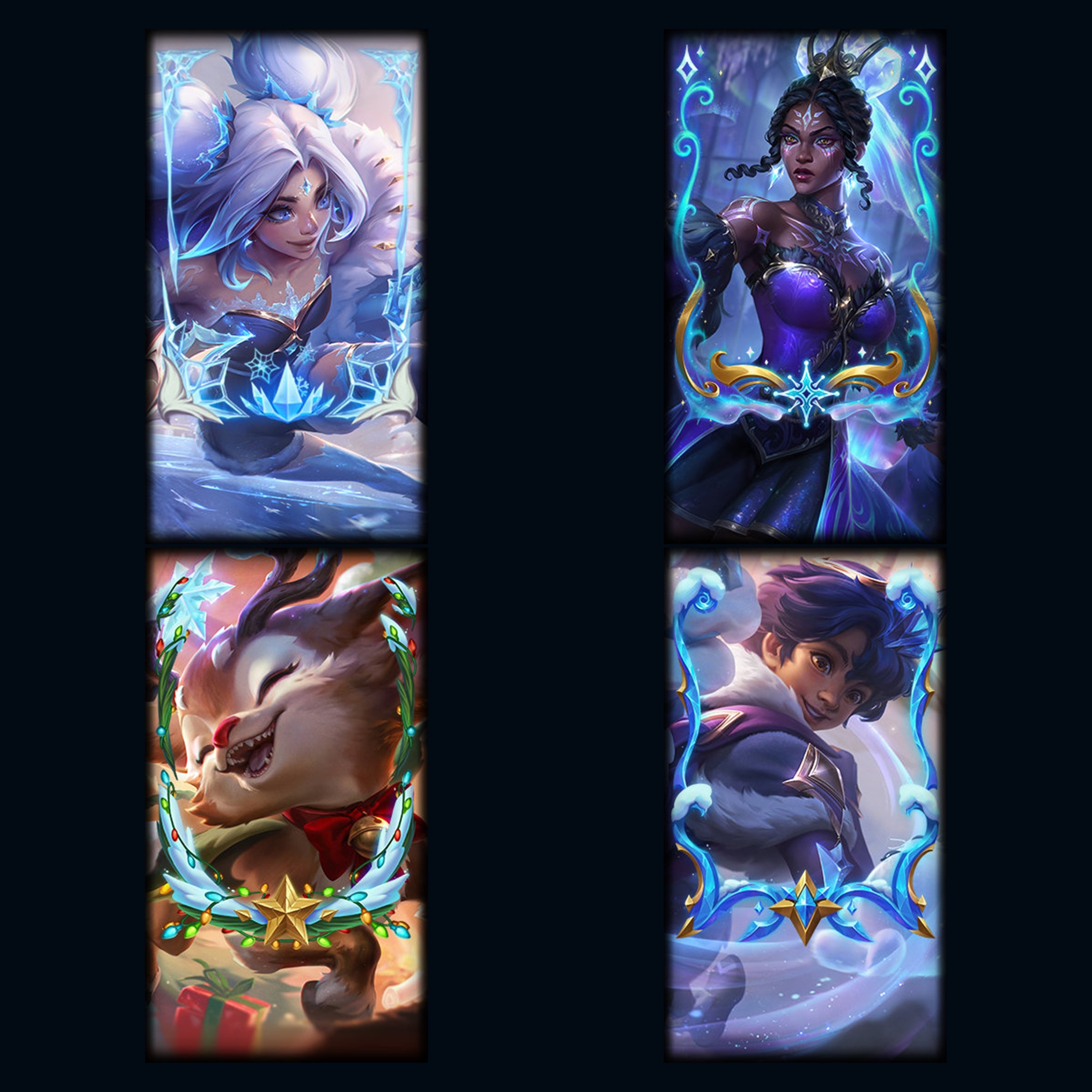 LOL新的冬季冰雪节皮肤边框,云顶之弈水晶玫瑰格温棋盘,传送特效等