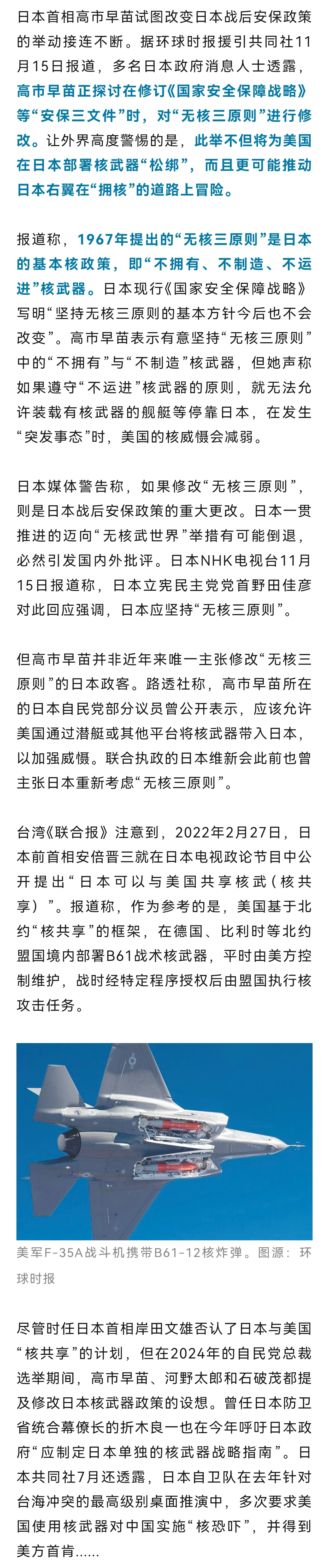 高市早苗真能搞事,挑衅完中国,又去招惹韩国,这是在反向推进中韩关系。此前,高市早苗还试图修改“无核三原则”,若美国在日本部署核武器,还会触碰到俄罗斯的底线。希望高市早苗一言为定,说到一定要做到,感觉每天都在见证历史。日前,高市早苗声称竹岛(韩国称独岛)属于日本领土的言论,再次引发韩国民众强烈不满。长久以来,美国将该岛的归属权问题,作为制约、利用日韩的工具。该岛距韩国郁陵岛约87km,距日本隐岐诸岛约157km,从地理邻近性、15 世纪朝鲜官方实地巡察与贡赋记录,以及更早、更连续的王朝文献来看,韩国对独岛的历史主权论据明显早于日本,且具备持续行政关注的证据链。1905年,日本内阁单方面将该岛编入岛根县的行为,并开始殖民扩张的一部分。如今,高市早苗刚上台没几天,就去戳这个日韩关系敏感点,再次暴露了日本军国主义势力的侵略野心,中国的台海问题,都敢说事关日本“安危存亡”,甚至威胁要出兵干涉,其嚣张气焰可见一斑,日本军国主义幽灵正在“复活”。可以看出,高市早苗企图通过制造领土争端,为复活日本军国主义寻找借口,为对外扩张埋下伏笔。历史上,日本军国主义曾给亚洲各国带来深重灾难,无数生灵涂炭,如今他们贼心不死,妄图重蹈覆辙。日本的野心不止于此,他们还妄图牵着美国的鼻子走,利用美国的力量为自己火中取栗。然而,美国自身问题缠身,国内政治分裂、经济衰退,国际影响力江河日下,对日本右翼势力的管束,明显有些力不从心。