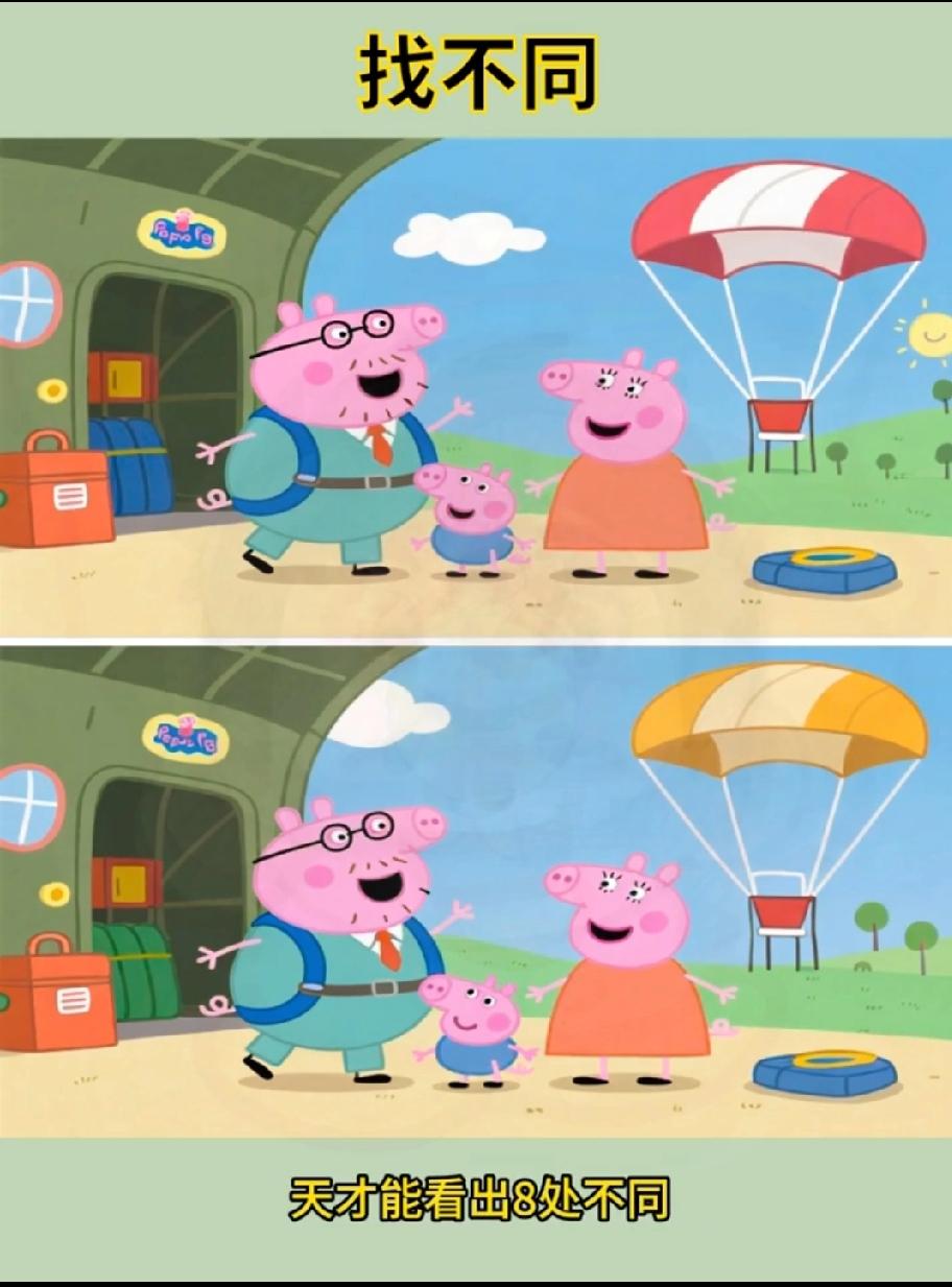 佩奇家的找不同太烧眼!8处不同藏得像“隐身”,我找了5分钟只看出2处,你是天才吗?