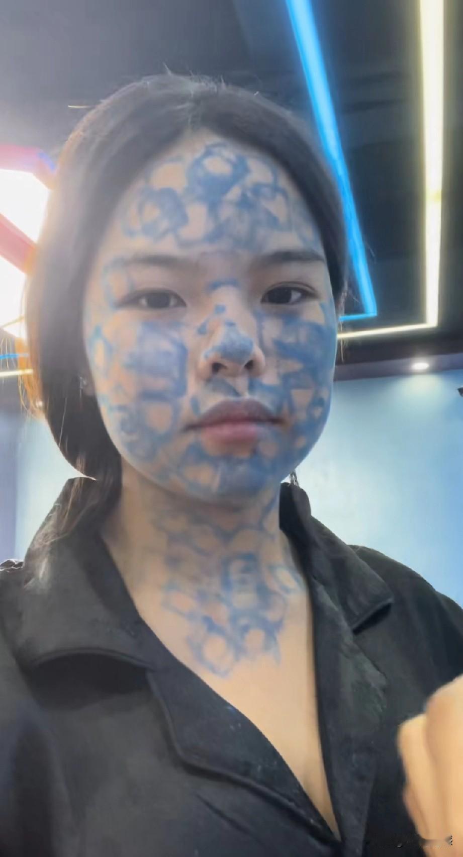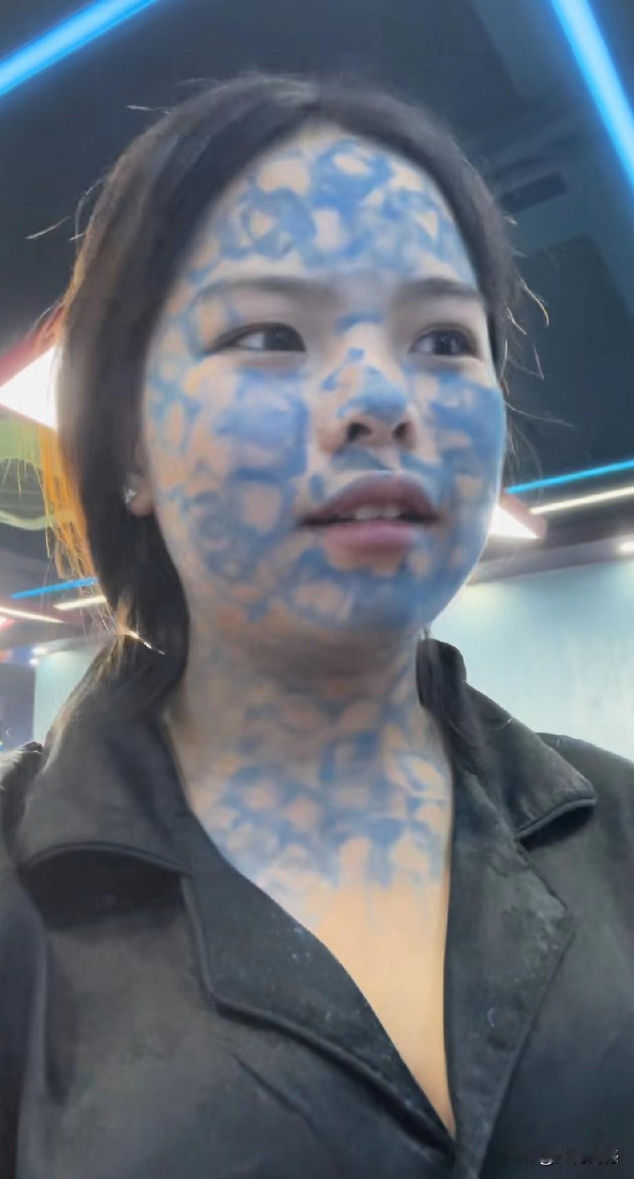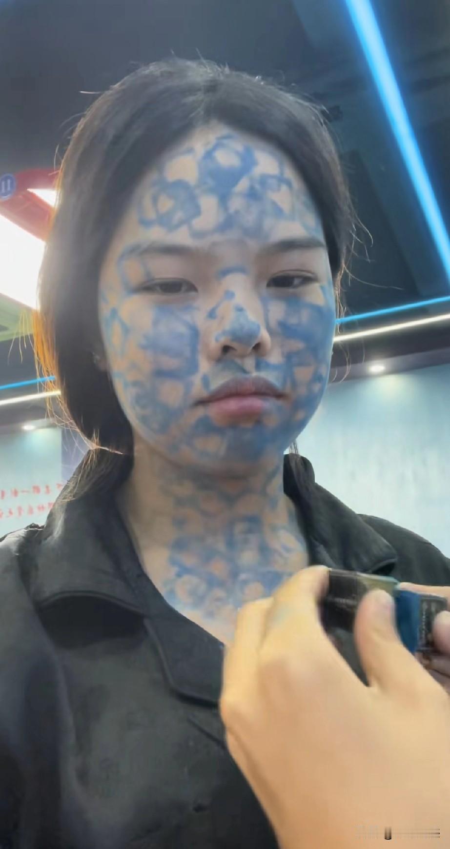 女孩脸上的这些东西,不是纹上去的,是涂抹上去的,用水一洗就能够洗下来,看来这个女孩还是比较明智的,这么做就对了,对纹身产生好奇的时候,也想试一试的时候,不妨涂抹一些东西体验一下就可以了,千万不要在脸上真纹,一旦纹上这东西,后悔就来不及了!
