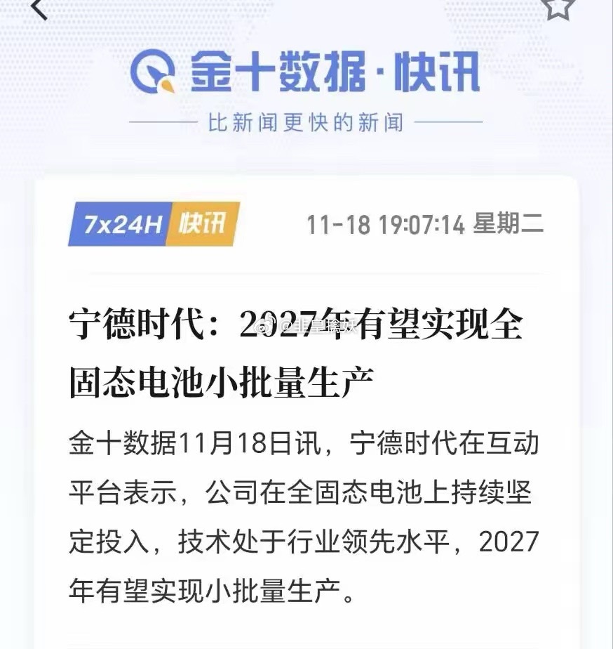 固态电池进展加快,宁德原计划2030年才能量产,现在时间大大提前了。2027年开