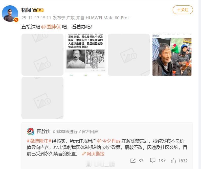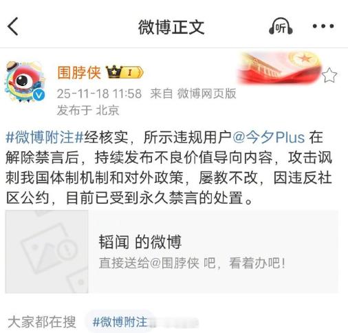 网友说今夕Plus刚被永久禁言了,一看还真是…终于系列了。