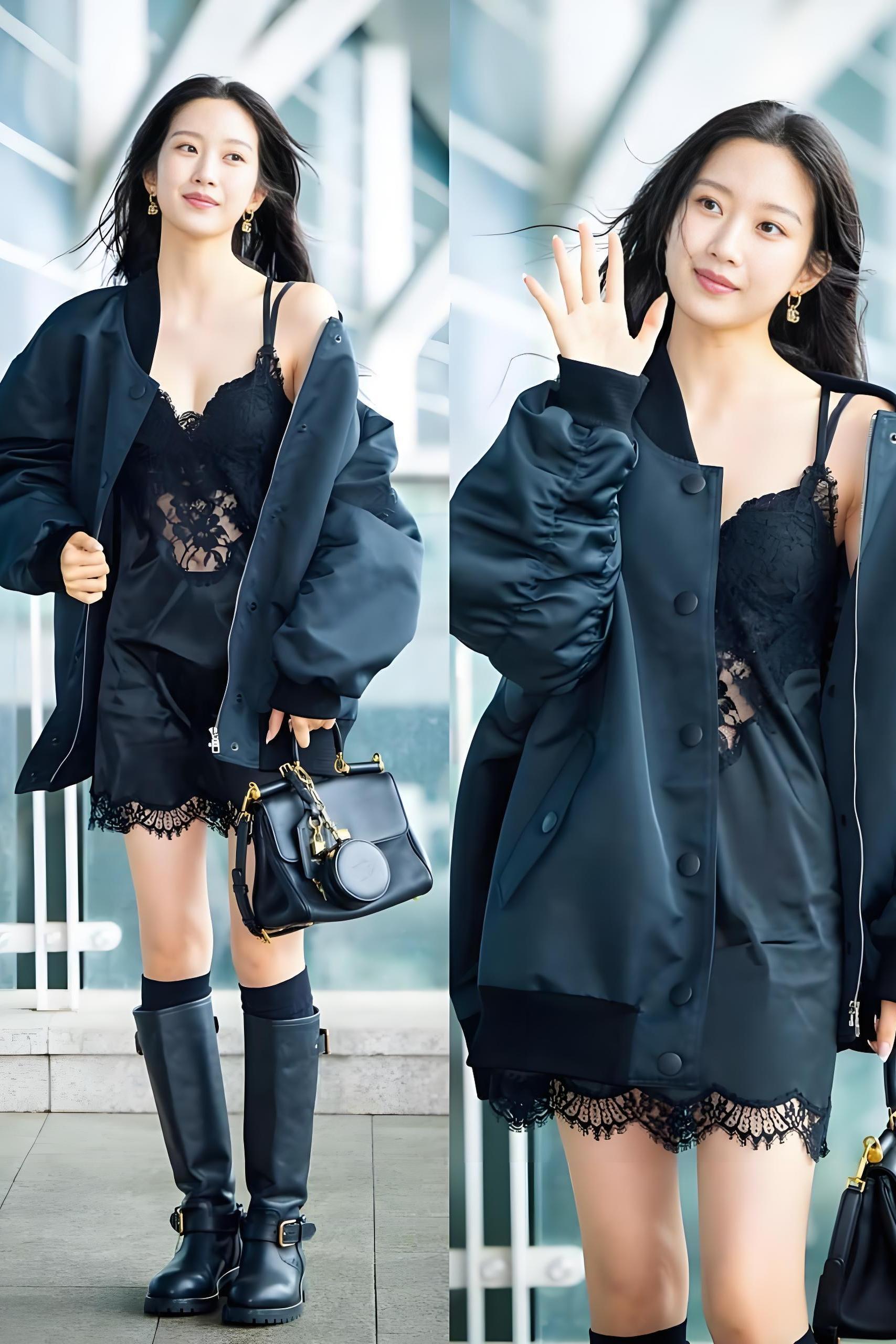 刘亦菲把死亡玫粉穿出了定制款的感觉,这种颜色普通人穿上分分钟黑三度,她居然能穿出
