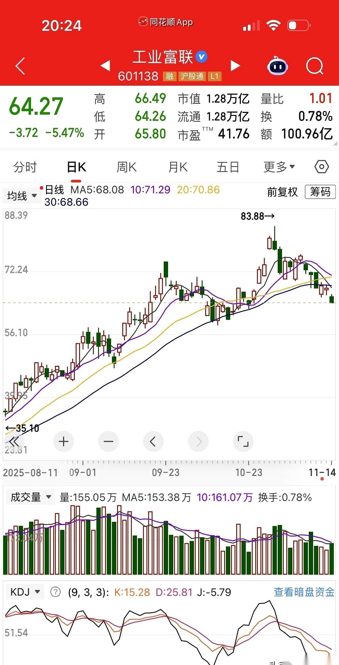 成本76块5。 哥们儿,我真不知道该说你啥好。 山顶上风景好是吧?风大,站不稳,还非要再搭个帐篷。 你看群里那个兄弟,70进,跌两天67就跑了,反手搞别的赚了18个点,潇洒离场。这不叫投机,这叫纪律。 而你呢?80多块追进去,眼看破位了,不想着赶紧跑,还想着“加仓摊平成本”。 我跟你说句扎心的,所有巨亏,都源于这六个字。 这不是比谁拿得住,这是比谁跑得快。人家都说了,你这就是纯纯的给人接盘。 还幻想着跌到20块?真到那时候,你这钱就不是钱了,是一张盖了章的“学费收据”,还是特贵的那种。 什么机器人,什么CPO,什么苹果概念……这些玩意儿是写给上涨的时候看的,是用来锦上添花的。 下跌的时候,它就只有一个概念,叫“风险”。 别总想着抄底,也别跟股票谈恋爱,它不爱你。 纪律是啥?纪律就是“疼了就得放手”。不然,市场能教你做人,一遍又一遍。