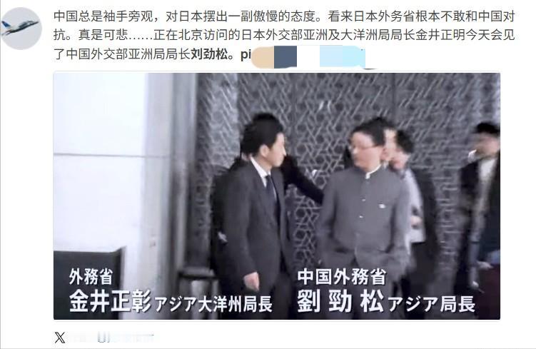 【会谈结束后,日网友对中方代表的表现很不满:中方双手插兜太无礼!】 今天(11.18),全日本所有媒体的头版头条几乎都是中日双方磋商的新闻。不过,日本网友并不关注具体讲了什么,而是对中方代表的表现非常不满。几乎所有的评论下面,都有日本网友在抱怨,称中方谈判代表刘司长的态度十分傲慢。 根据国内媒体发布的视频显示,会谈结束后,日本代表金井正彰和中方代表刘劲松司长一同走出会场。金井正彰在离开时边走边听刘司长讲话,而且频频点头,表情十分严肃。相反,我们的刘司长则是身穿少见的中山装,双手插兜,脸上也没有什么笑容。 根据现场流传的视频画面,会谈结束后,中方代表刘劲松与日本代表金井正彰并肩走出会场。画面中,日方代表金井正彰侧着身子,一边走一边认真聆听刘司长的讲话,神情严肃,还不时点头示意,姿态上显得非常专注和尊重。 相比之下,刘司长的姿态则显得轻松许多。他身穿一套颇为少见的中山装,步伐稳健,双手自然地插在裤兜里,面部表情平静,甚至没有一丝笑容。 正是这组对比强烈的画面,瞬间点燃了日本网友的情绪。在各大新闻网站的评论区,几乎清一色都是对刘司长这种姿态的批评,认为这在日本的外交礼仪中是绝对失礼的表现,是对会谈对手乃至日本的不尊重。 这种强烈的反应,深深植根于日本的社会文化。在日本,尤其是在正式的商务或外交场合,身体语言被赋予了极高的重视。 双手插兜这个动作,通常被解读为心不在焉、吊儿郎当,甚至是一种轻蔑的态度。它传递出的潜台词是“我根本没把你当回事”或者“我对这次谈话毫无兴趣”。 因此,当日本网友看到自己的代表在认真倾听,而中方代表却以如此“随意”的姿态相伴时,他们感受到的不仅仅是个体行为上的不适,更是一种国家层面上的冒犯。这种情绪的蔓延,让原本就复杂的磋商议题,被一层个人礼仪的阴云所笼罩。 然而,如果我们跳出日本的文化语境,这个动作或许还有其他的解读空间。在中国,双手插兜并不总是带有强烈的负面色彩。 在很多情况下,它可能仅仅是一种放松、自信或者正在思考的习惯性动作。尤其是在穿着中山装这种本身就带有庄重感和民族特色的服装时,这种姿态或许会被一些中国观众解读为一种从容不迫的大国风范。 中山装本身就是一个强烈的符号,它让人联想到历史、传统和一种不卑不亢的立场。当这种着装与双手插兜的姿态结合在一起时,在某些人眼中,可能构成了一种“有理有节、不怒自威”的气场。这种文化认知上的差异,恰恰是本次事件的引爆点。 说到底,这场由“双手插兜”引发的舆论风波,真的仅仅关乎一个简单的动作吗?恐怕并非如此。 因为高市早苗的疯狂言论,目前双方存在着巨大的分歧和深刻的对立,会谈的气氛本身就注定不会轻松。在这种背景下,任何一方代表的细微举动,都可能被对方放大解读,成为其立场的某种投射。 刘司长的姿态,无论是有意还是无意,在日本网友眼中,就成了中国强硬态度的具象化表现。于是这个动作,承载了远超其本身的意义,成为了中日之间紧张关系的一个小小缩影。 一个看似不经意的姿态,却像一面棱镜,折射出文化、外交和民意交织的复杂光影。它让我们看到,在国与国的交往中,语言之外的表达同样拥有千钧之力。 那么,这究竟是文化差异造成的无心之失,还是一种精心设计的外交信号?一个姿态,真的能够定义一场重要会谈的成败与诚意吗?或许,每个人心中都有自己的答案,而你的看法又是什么呢?