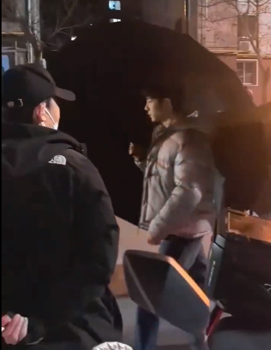 肖战拿了好大一把伞,肖战拍摄路透扛着好大一把伞啊
