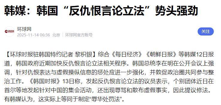 韩国政坛炸锅!共同民主党议员提交重磅法案:凡在集会中发表针对中国的仇恨言论、公然侮辱中国损害国家尊严者,最高可判处5年有期徒刑,消息一出瞬间引爆韩国舆论场。 先把法案的核心内容扒清楚:这可不是简单的口头警告,而是实打实的刑法修订——只要在公开集会里发表针对特定国家的仇恨言论,或者用侮辱性言行损害其尊严,最高能判5年有期徒刑,罚款上限也到了1000万韩元,换算过来差不多是四万多人民币。 而且,它打破了以往"不告不理"的规矩,直接定为公诉罪,意思是就算受影响的一方没提控诉,韩国检察院也能主动立案调查,从头到尾追到底,配套的还有另一份法案,禁止在学校200米范围内搞这类仇恨集会,等于直接端了极端分子向年轻人灌输偏见的老窝。 法案盯着的可不是空穴来风的问题,2024年一年,首尔、釜山就闹了17场针对性集会,极端分子举着侮辱性标语,编些没影的"威胁论",甚至敢冲击中资机构的驻韩办事处。 到了2025年8月更过分,有右翼团体在光化门广场公然歪曲历史、辱骂他国国民,视频传到网上后,当月中国赴韩游客直接跌了23%,这些闹哄哄的举动没伤到别人,倒先坑了自己:2024年中韩贸易额降了12%,韩国对华出口少了15%,半导体、汽车这些吃饭的产业全受了牵连,连全球软实力排名都掉了8位,创下近年最大跌幅。 难怪法案一出来,民众立马分成两派,支持的人觉得早该刹住这股歪风,民调里61%的受访者都赞成用立法管管仇恨言论,尤其是共同民主党支持者里,68%的人都觉得极端分子该收敛了,反对的声音主要怕踩了言论自由的红线,还有人跟着在野党喊"双重标准",说怎么不管反美抗议,偏盯着这事儿较真。 但说白了,法案卡得挺清楚,针对的是"恶意侮辱",不是正常的议题讨论,以前公开侮辱他国最多判1年,现在加重处罚,就是冲着那些突破底线的极端行为来的,总统李在明早把话说透了,这种仇恨言论根本不是言论自由,就是超越界限的犯罪。 还有,在野党国民力量党的反应倒比谁都激烈,直接骂这是"讨好法案",甚至拿焚烧美国国旗的例子讽刺执政党双标,可这火冒三丈的背后,藏着的是政治算计,这党长期靠着迎合极端情绪拉选票,把反华当政治筹码,现在法案要断了这条路,等于砸了他们的饭碗。 毕竟,那些极端言论早成了一条产业链,街头暴民喊口号造势,网络博主编谣言涨粉,保守媒体跟着炒作,最后政客出来收割选票,环环相扣挣得盆满钵满,就像11月被抓的那个百万粉丝博主,在网上造谣"免签游客贩卖器官",放以前可能混过去,现在直接被按上"严重犯罪"的帽子查办,这链条自然就断了。 其实,明眼人都看得出来,这法案根本不是什么讨好,而是韩国算清了现实账,中国连续18年都是韩国最大贸易伙伴,2024年双边贸易额还维持在2800亿美元,芯片、化妆品这些核心商品的中国市场占比动不动就超过30%,有的甚至到45%。可极端分子不管这些,堵着机场骂游客,编谣言挑动民间对立,结果呢? 2025年上半年,32%的在华韩企因为民间反感情绪经营困难,有的只能缩减业务跑路,国务总理金民锡说得实在,这些仇视示威根本就是"自残行为"——骂走游客,亏的是韩国的酒店餐饮;搞坏关系,坑的是自己的出口企业。 放眼全球,这事儿也不算新鲜,德国、法国早就有类似法律,煽动国家间仇恨、搞歧视言论的都得重罚,本来就是文明国家的共识,韩国这回立法,说白了就是补之前的漏洞。 毕竟,任由极端言论泛滥,伤的是自己的经济根基和国际形象,只不过法案能不能落地还是未知数,但不管最后成不成,这信号已经很明确了:再想靠骂他国、煽仇恨博眼球、谋利益,迟早要付法律代价。
