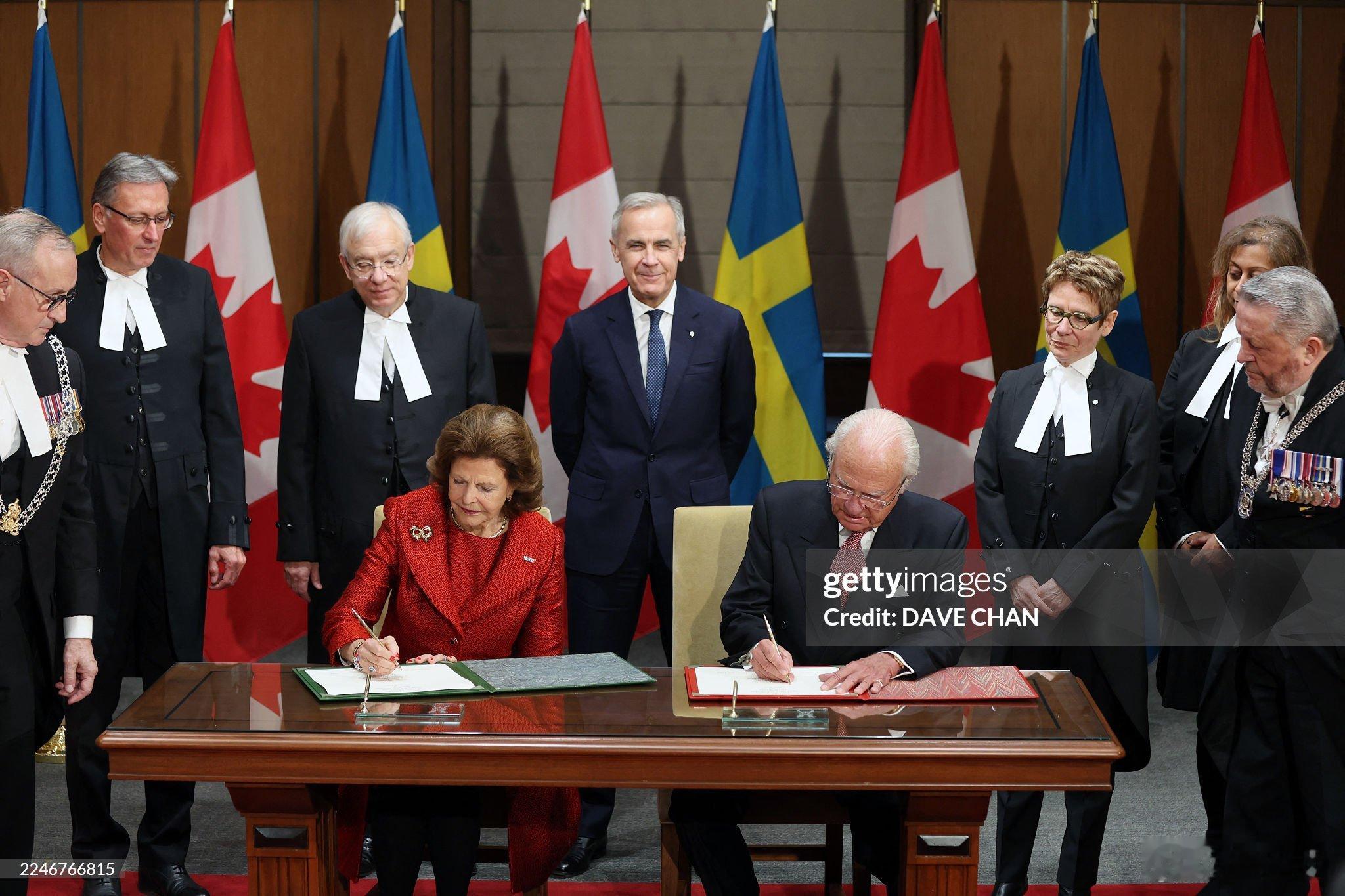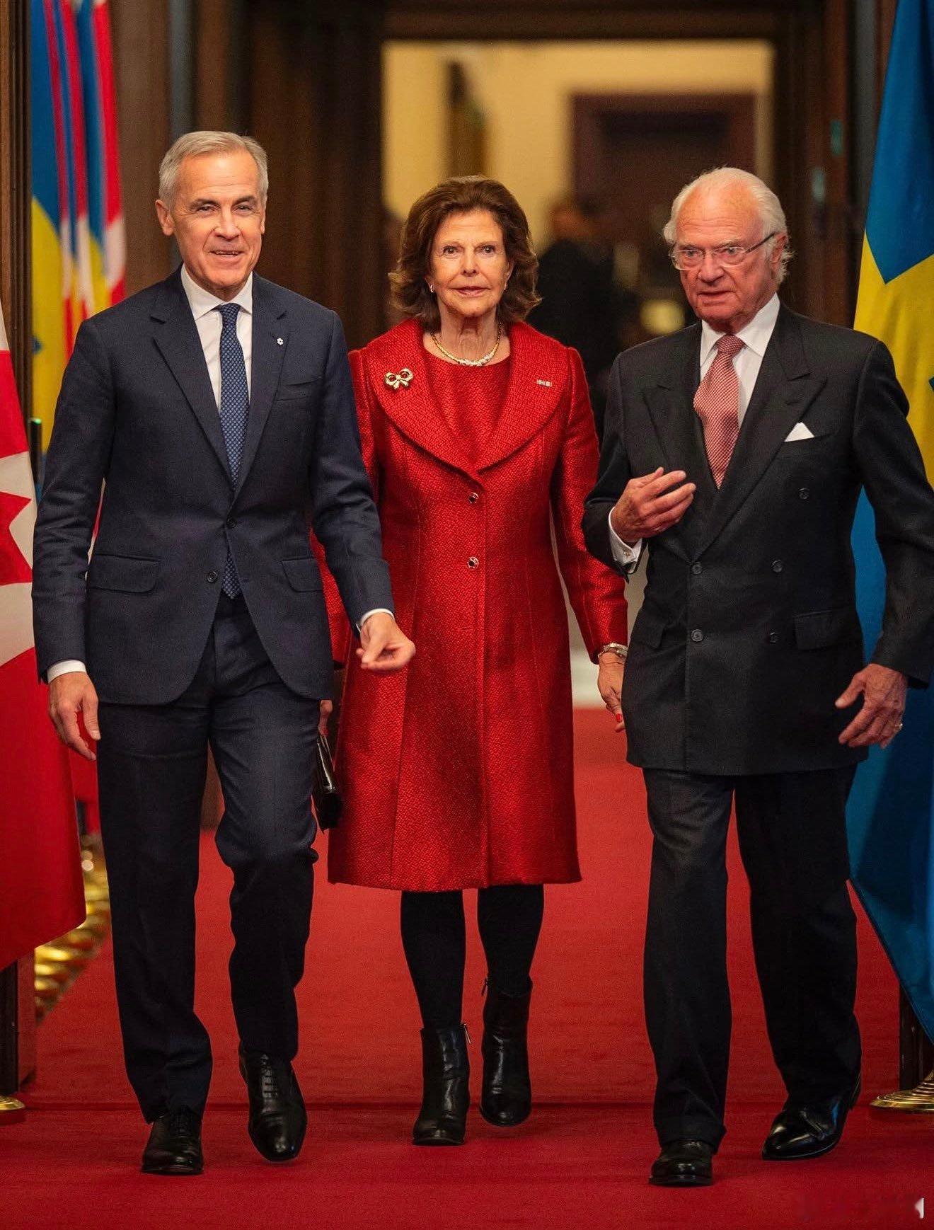 🇸🇪🇨🇦11月18日,卡尔十六世·古斯塔夫国王和西尔维亚王后在渥太华国会山庄出席加拿大总理马克·卡尼举办的欢迎仪式。
