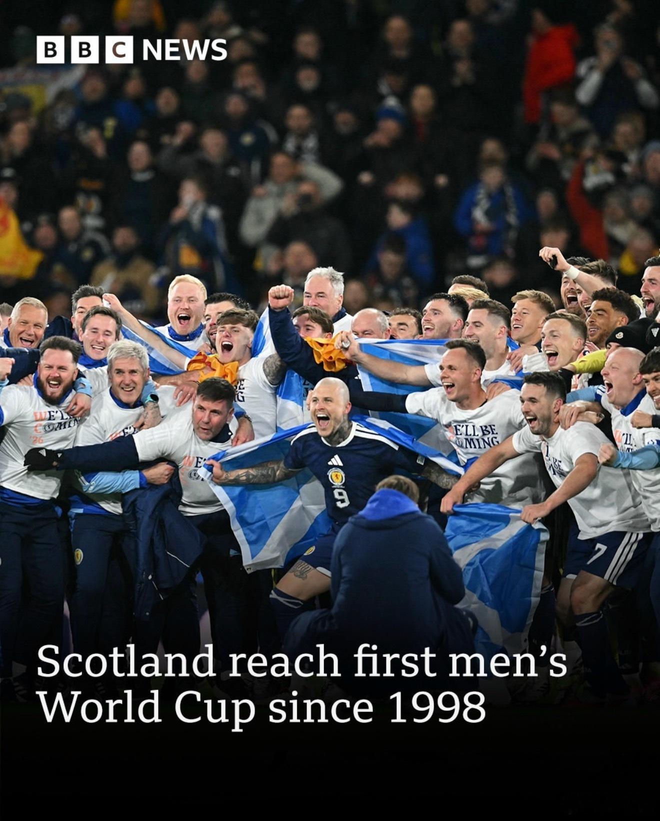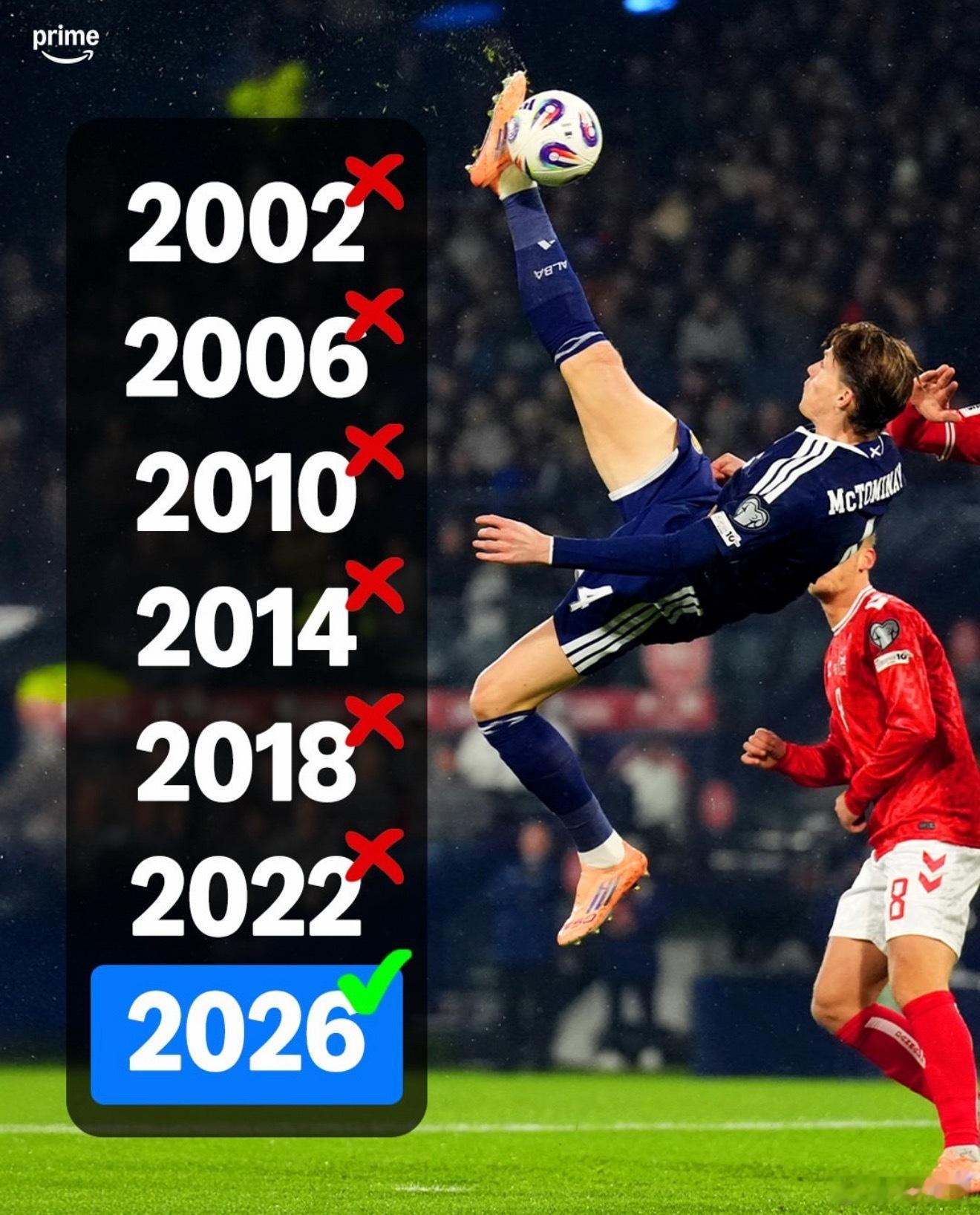 两位曼联旧将,也是如今的那不勒斯队友,在世预赛中狭路相逢。麦克托米奈开场4分钟就倒钩破门,吹响了苏格兰队直接进军世界杯的进攻号角。尽管霍伊伦57分钟的进球一度帮助丹麦扳平了比分,但苏格兰队仍然做到了在78分钟之后连进3球。4:2的比分,让苏格兰队终结了1998年之后连续无缘6届世界杯的历史。时隔28年,苏格兰队终于要在2026年,重新登上世界杯的舞台。