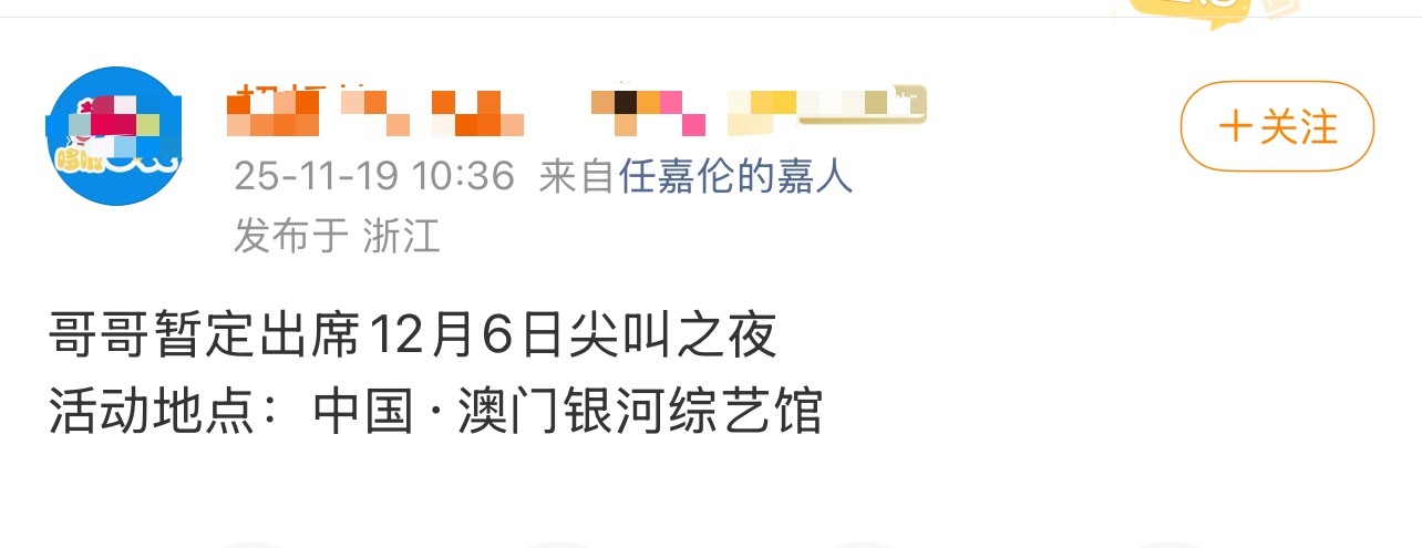 任嘉伦也确认参加澳门尖叫之夜啦,何贤是得到